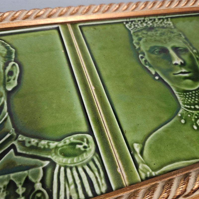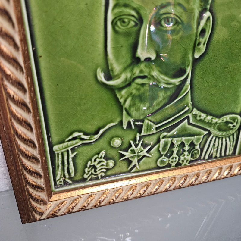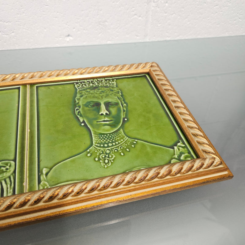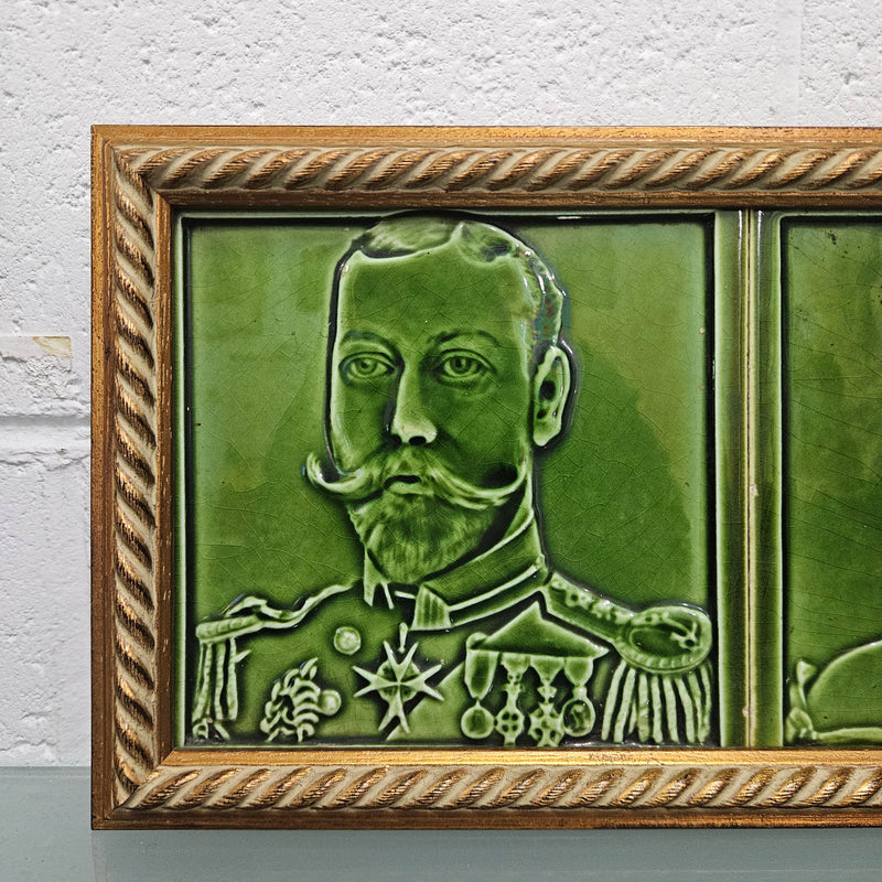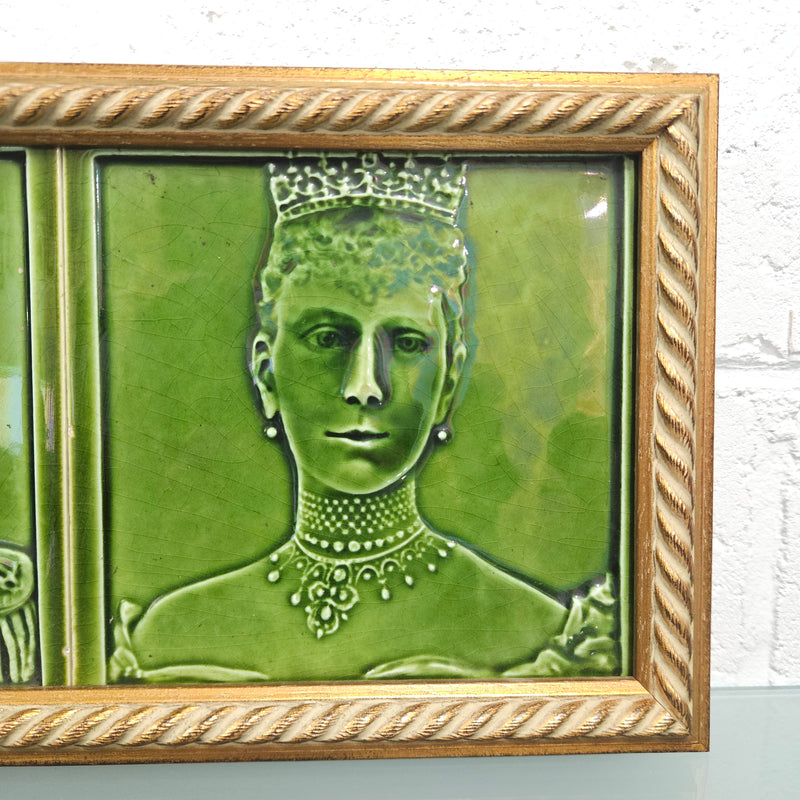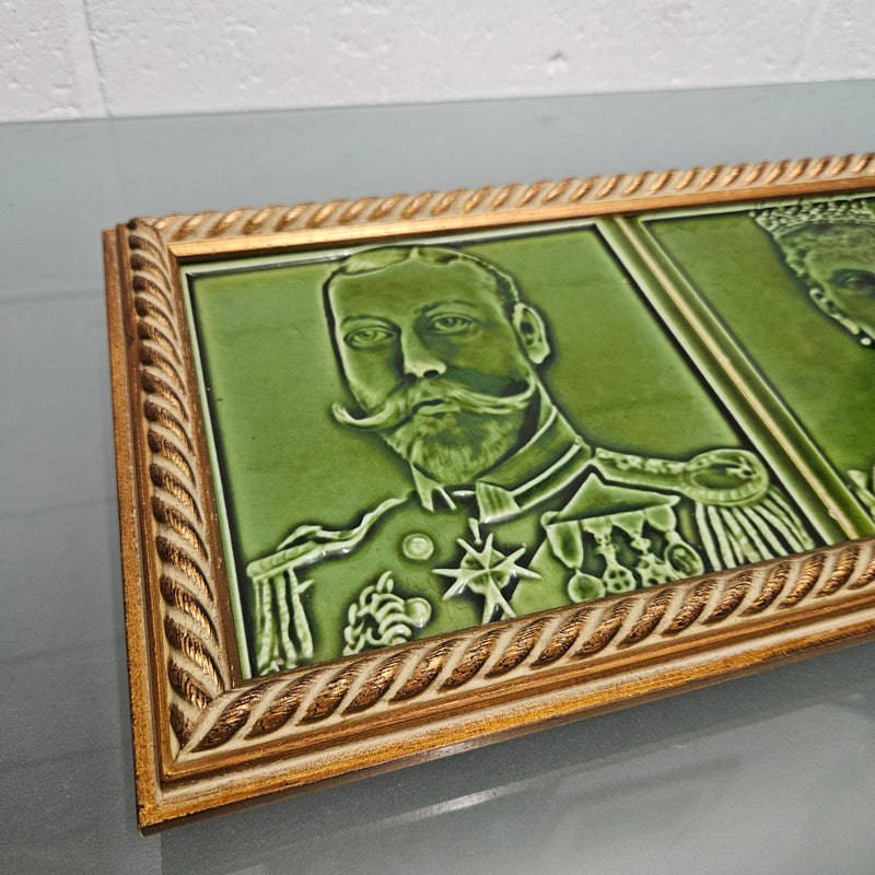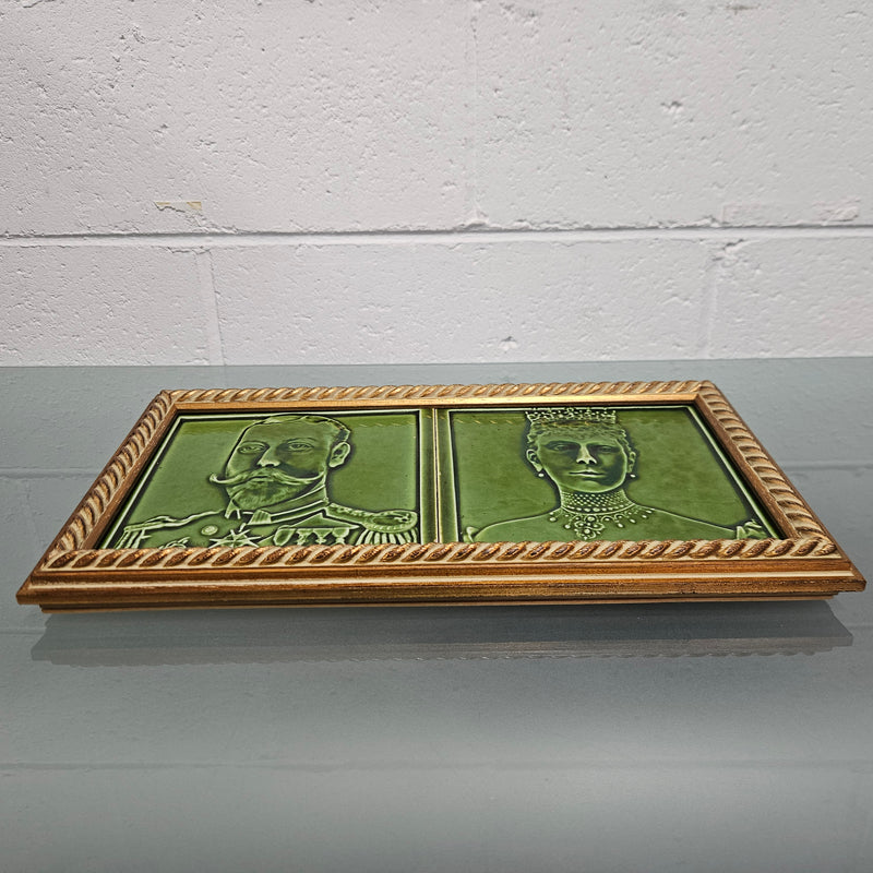 Pair Rare Edwardian Framed Tiles King Georg V & Queen Mary