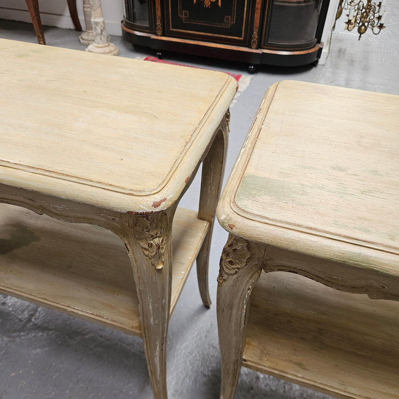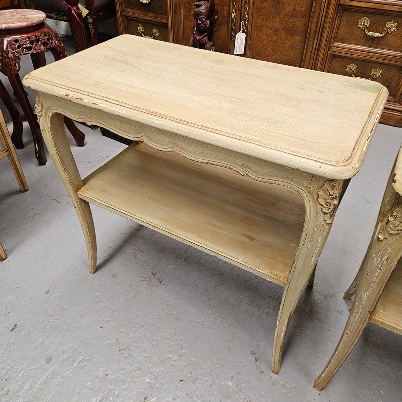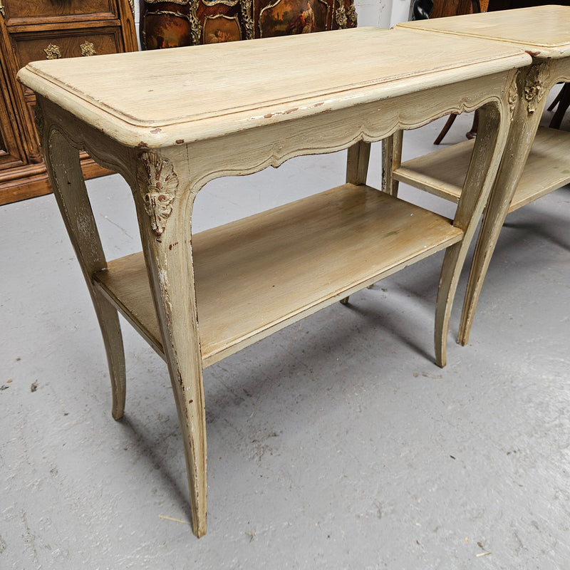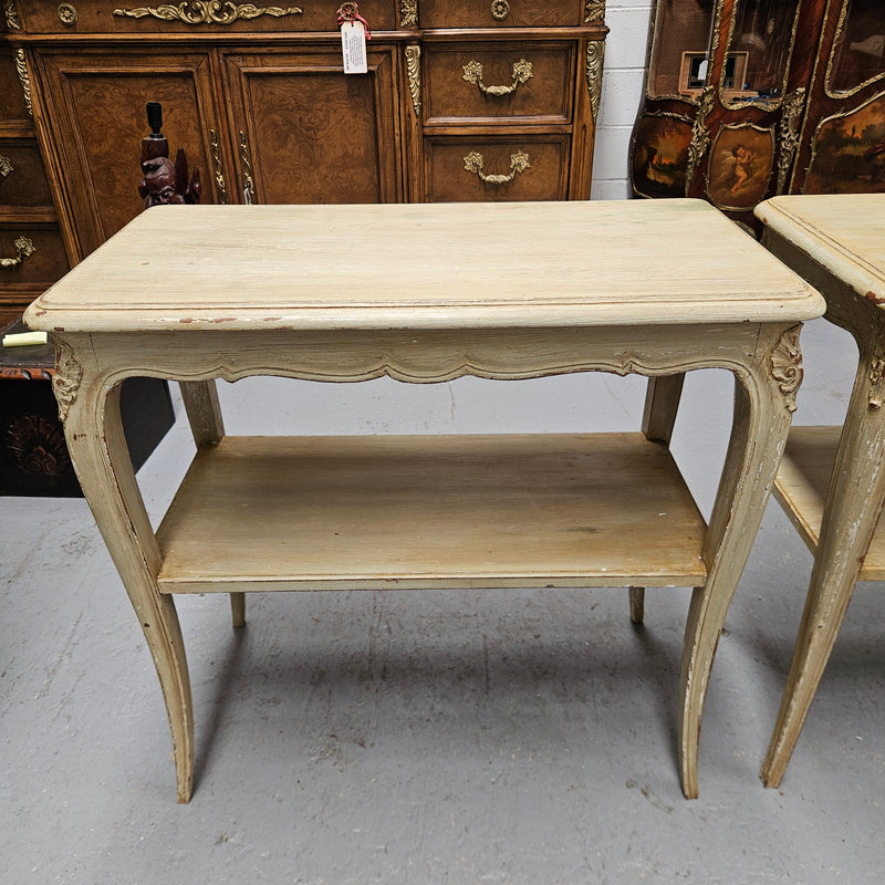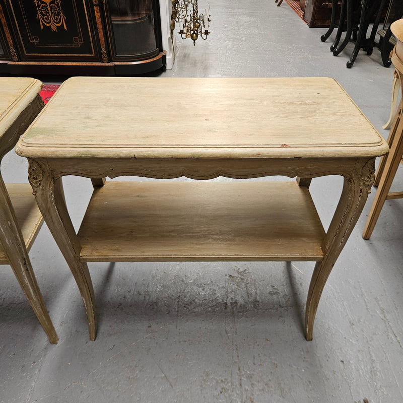 Rustic 19th Century Louis XVth style pair of oak painted side tables, they are in rustic condition as shown in the photos. It has a bottom shelf and is of generous size. Can be sold separately $595.00 each. Please see photos as they form part of the description.