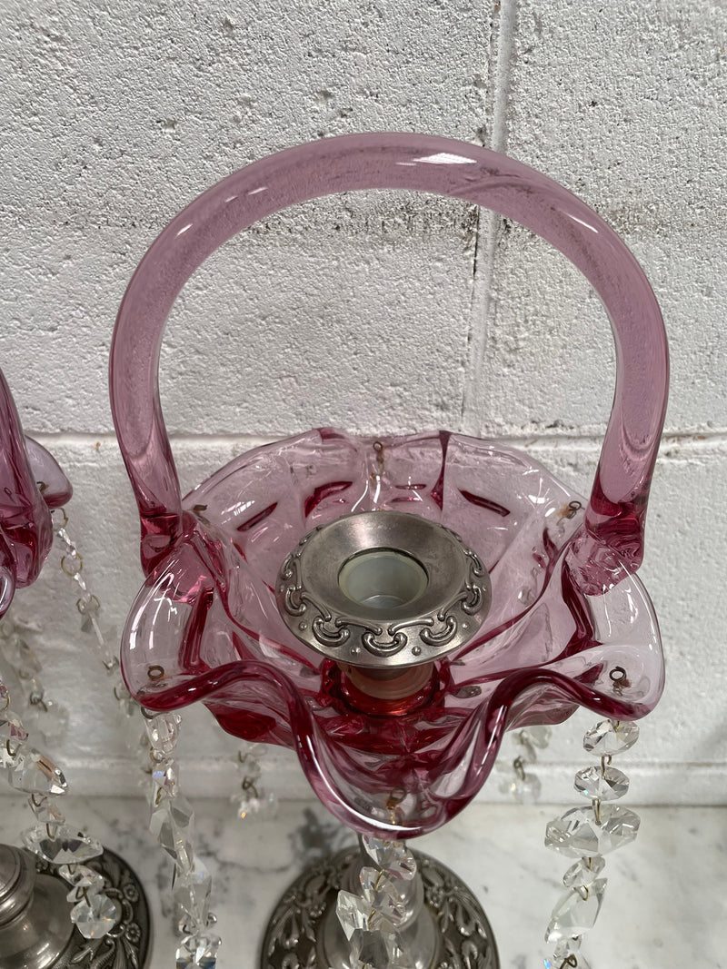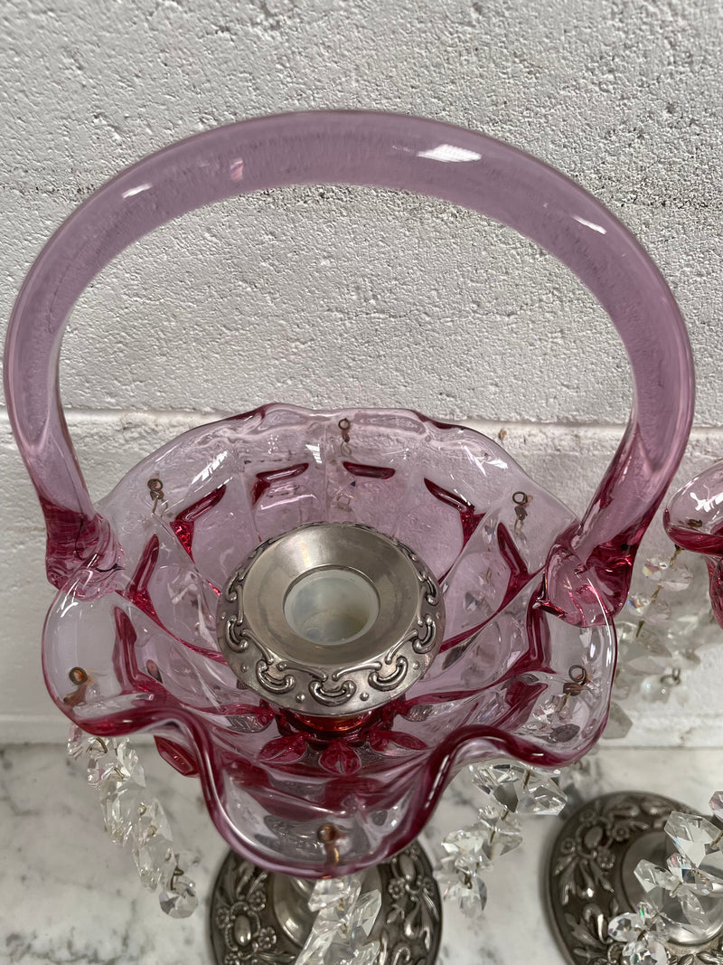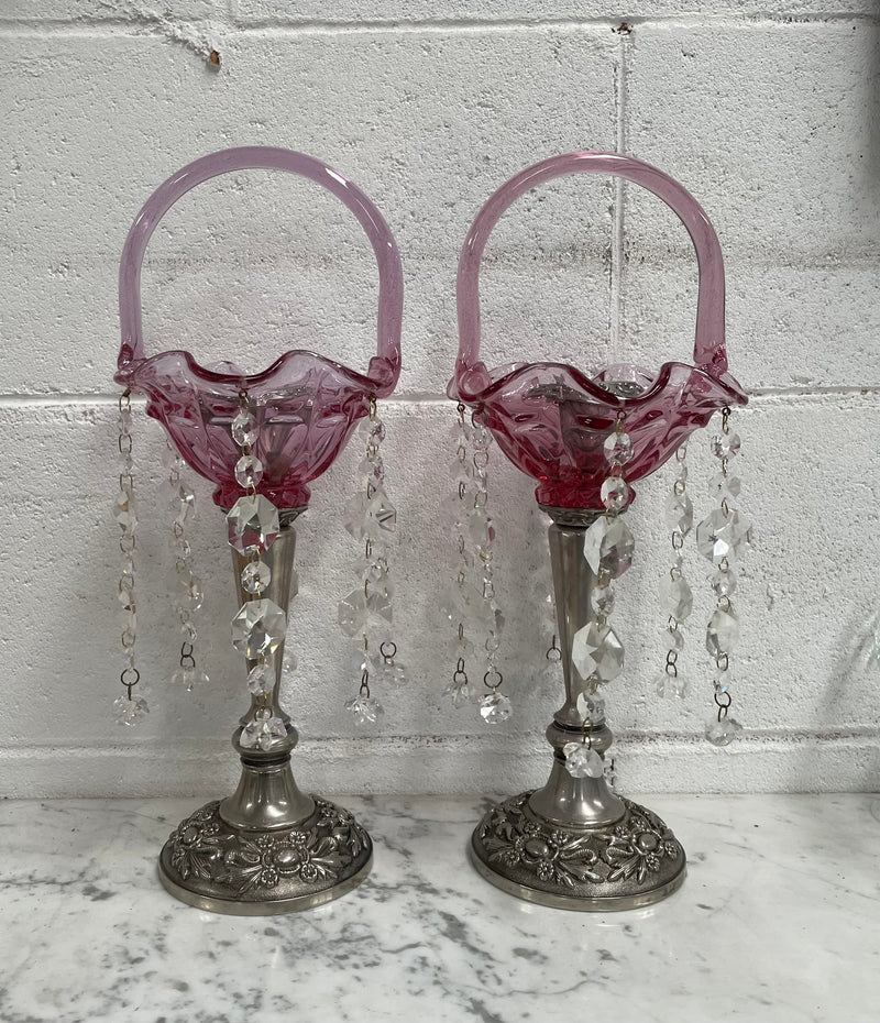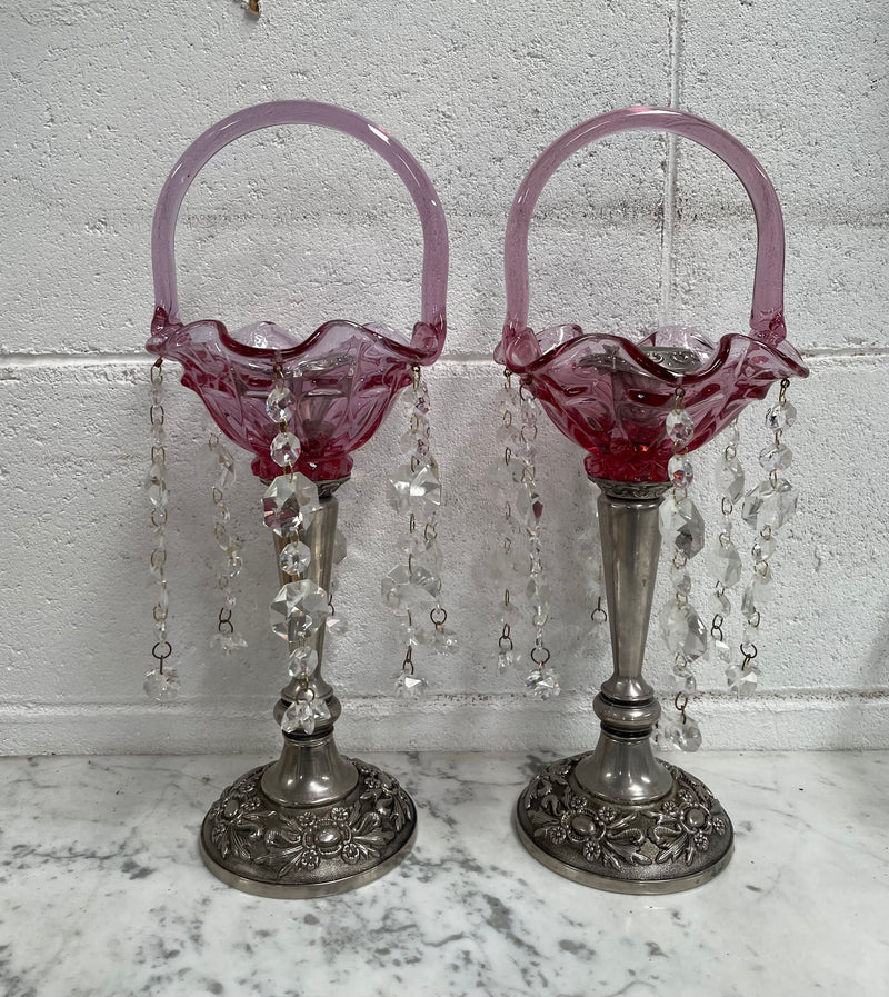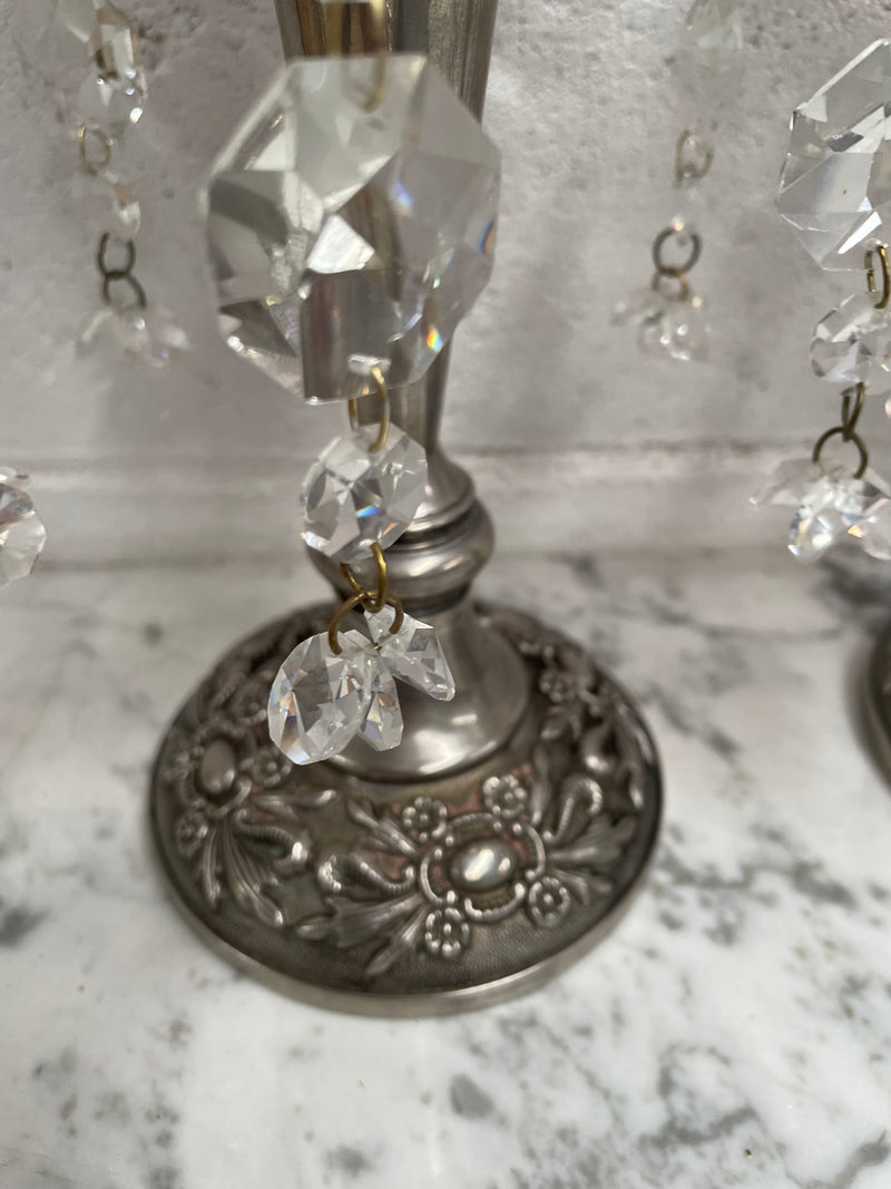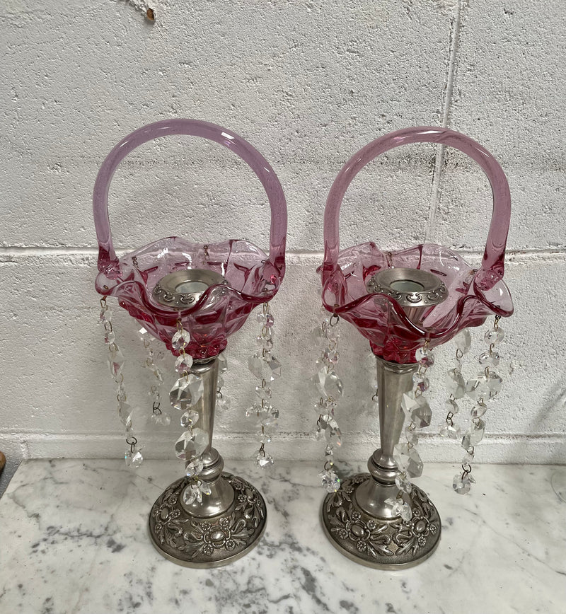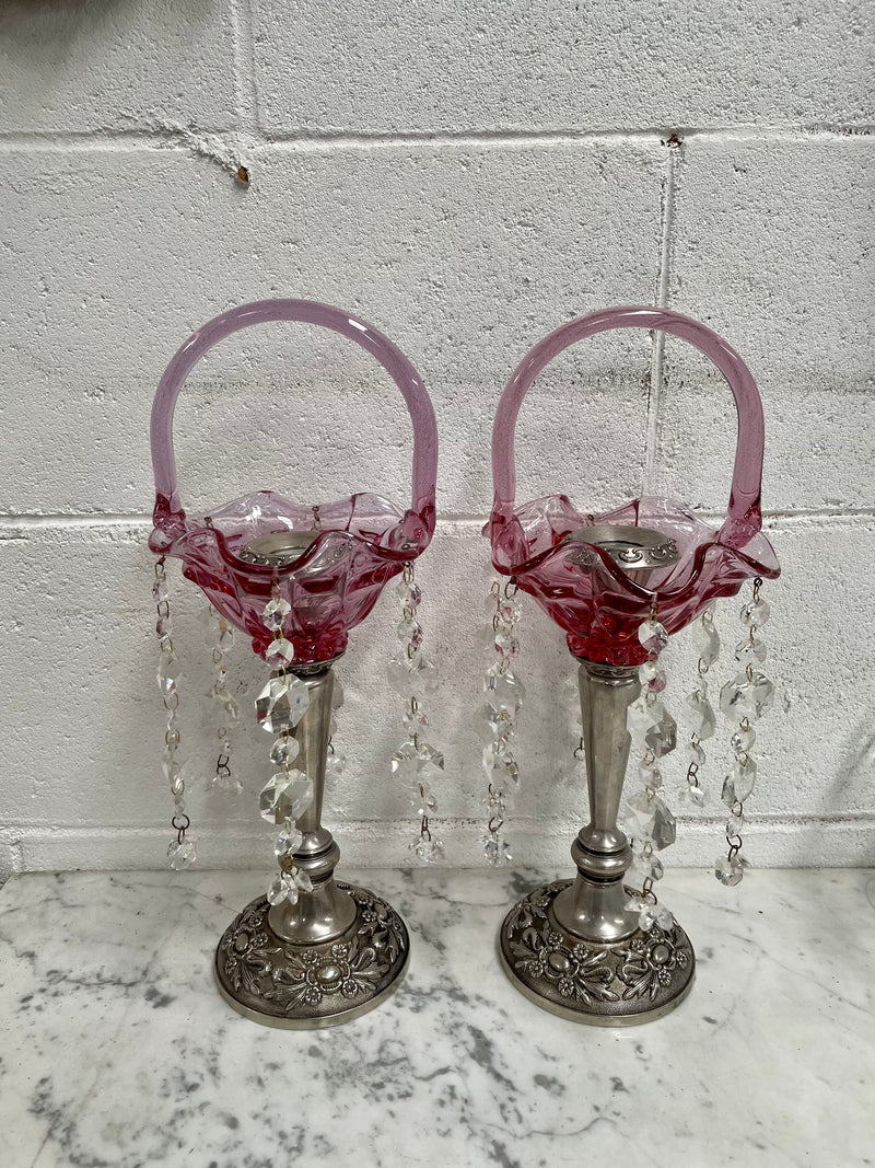Pair Vintage Silver & Glass Candlesticks