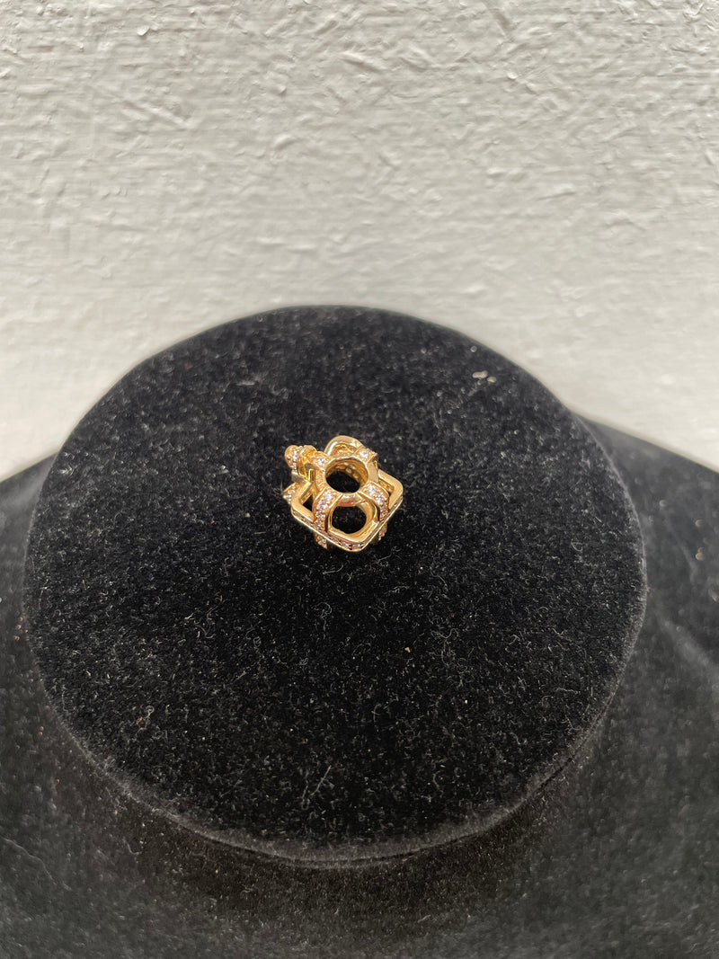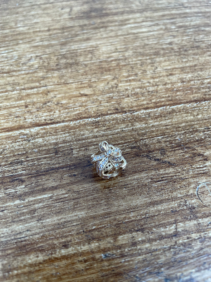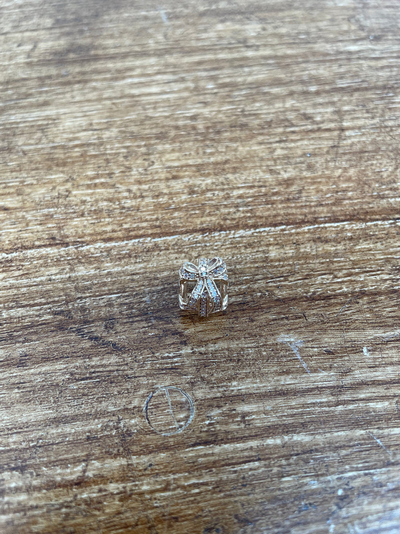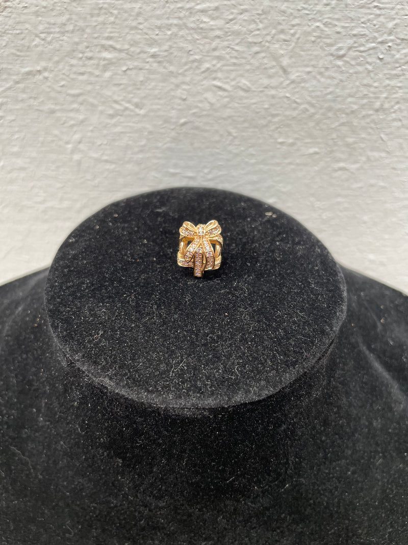 Genuine Pandora 14k gold "All wrapped up" Charm set with white stones. In good original condition. Please see photos as they form part of the description.