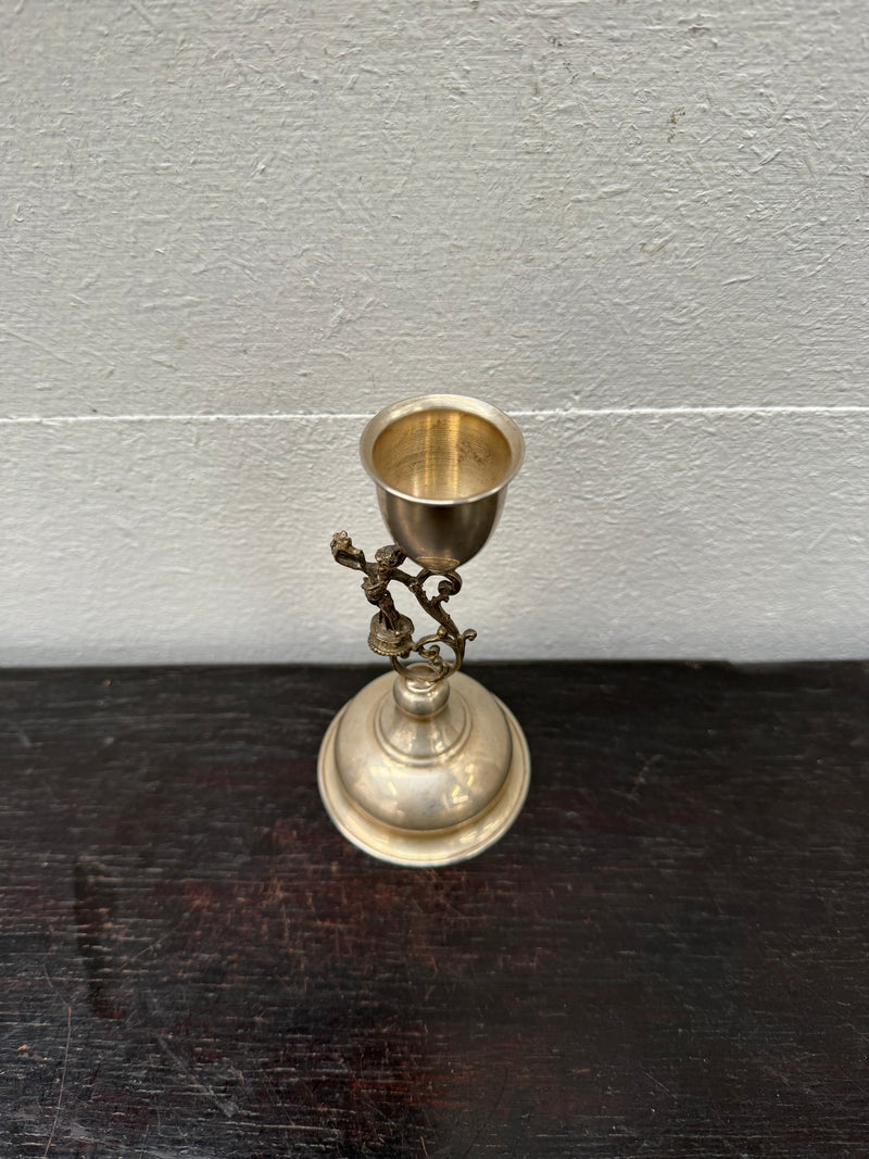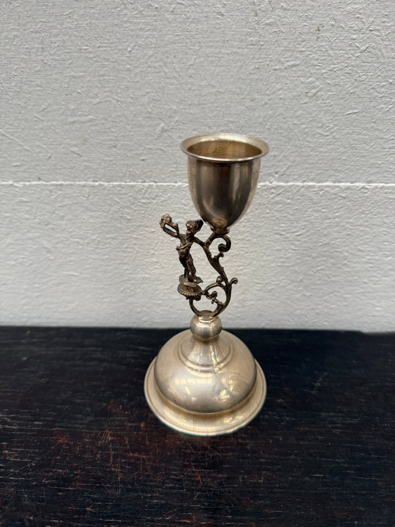 A period hallmarked continental silver cherub mounted candlestick. Please see all photos as they form part of the description and condition.