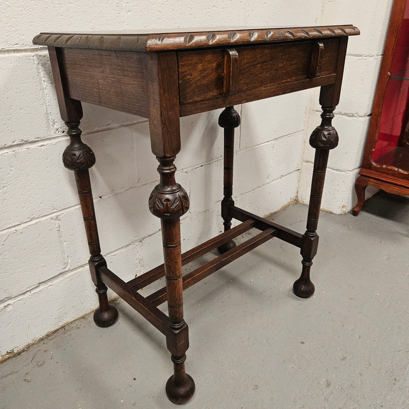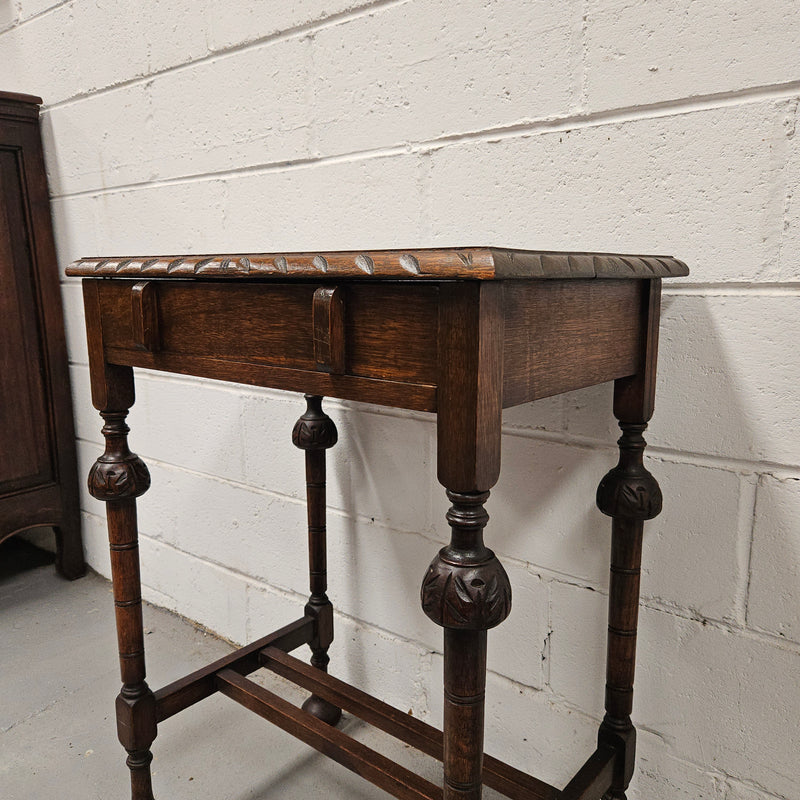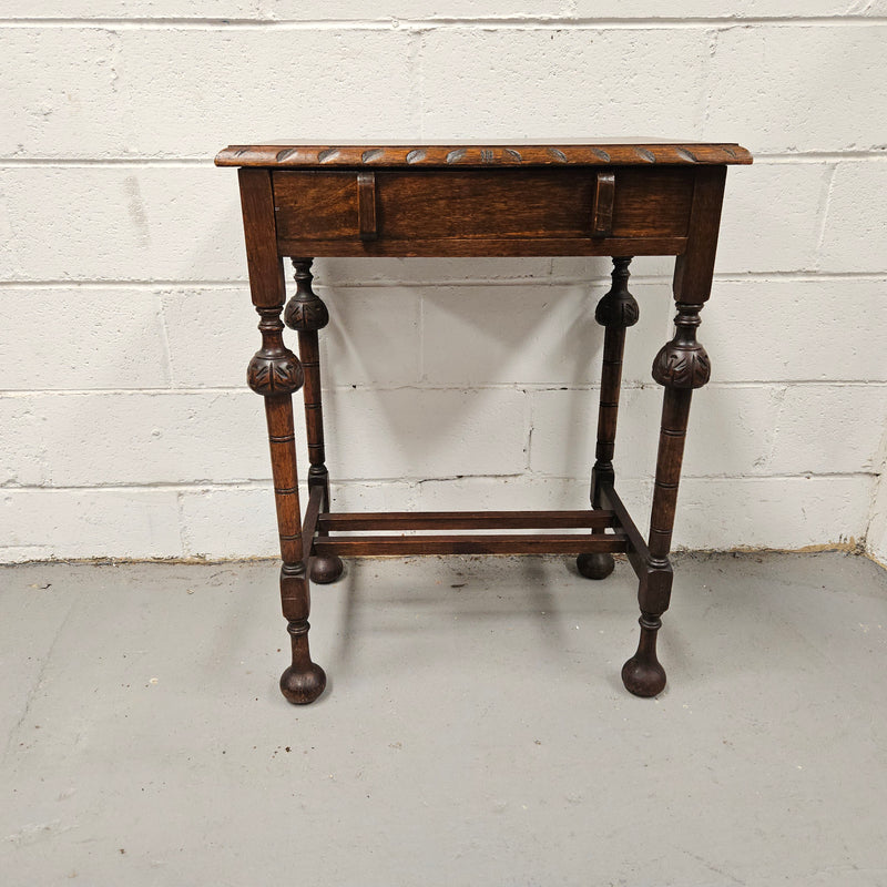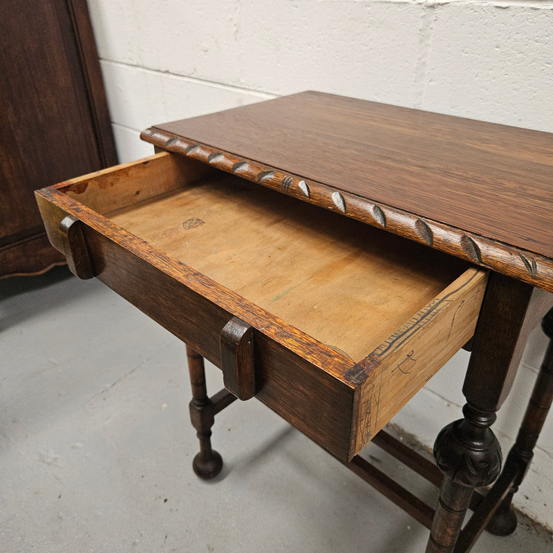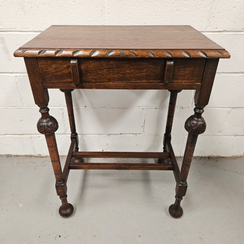 Period Oak Side Table With Drawer