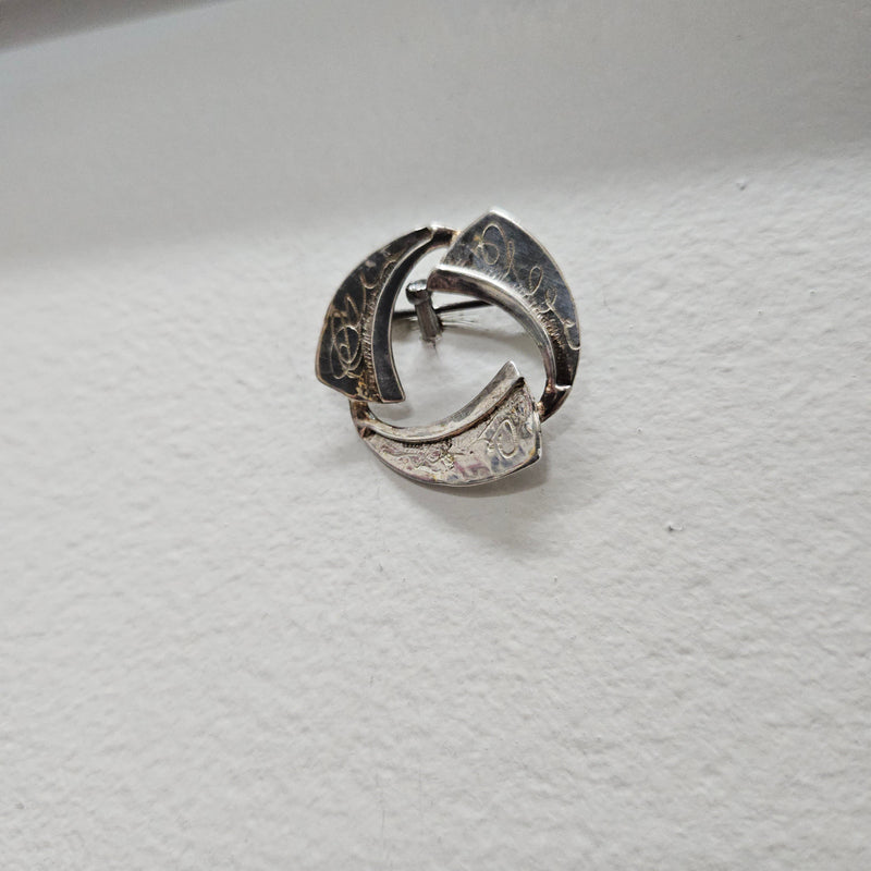 Pretty 3 sectional engraved silver brooch with Makers Mark. In good condition. Please see photos as they form part of the description.