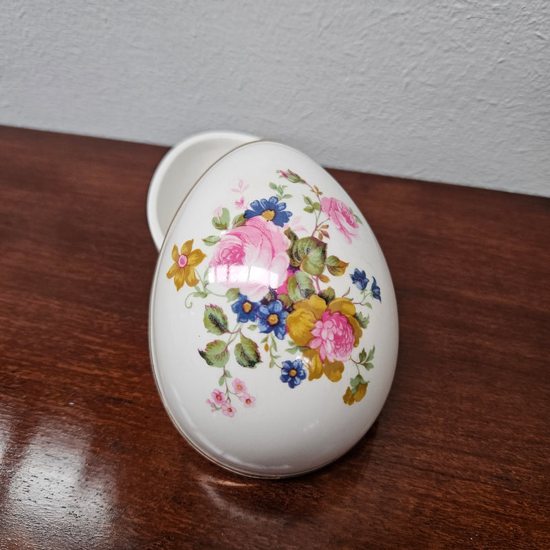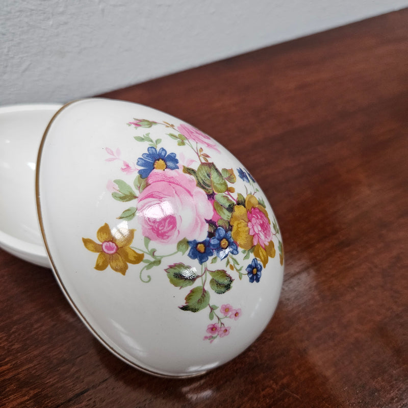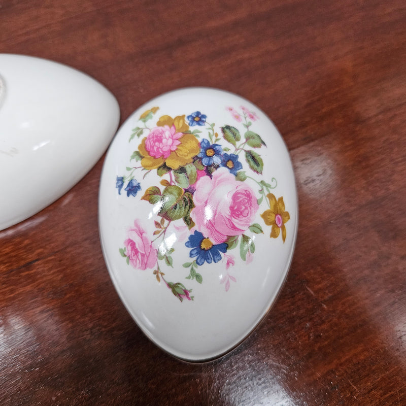 Pretty Floral "Sadler" Ceramic Egg Trinket Box