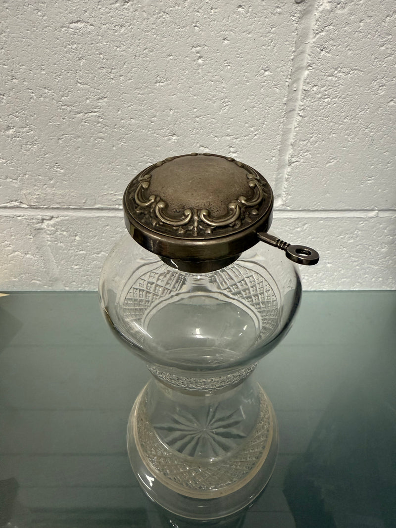 Rare Edwardian Single Bottle Tantalus With Key Silver Plated Top. Please view photo's as they help to form part of the description and condition.