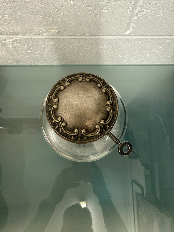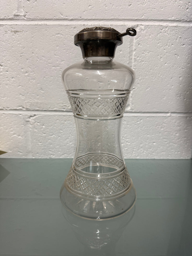 Rare Edwardian Single Bottle Tantalus With Key Silver Plated Top