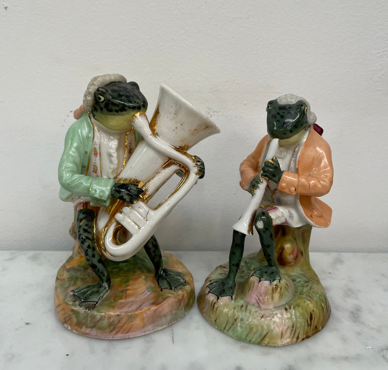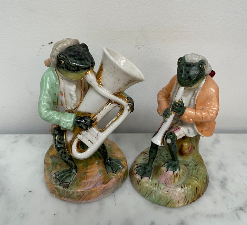 Rare Pair Of Sitzendorf Dresden Frog Musicians