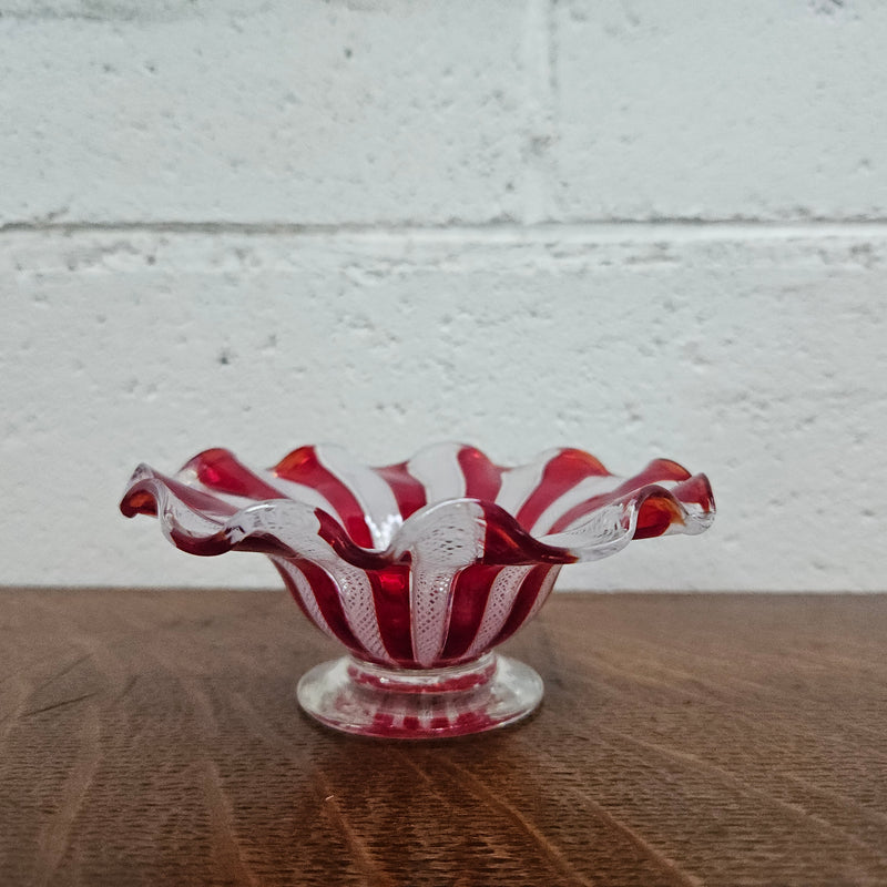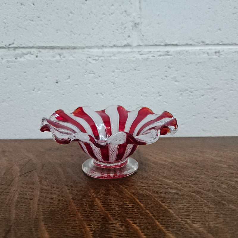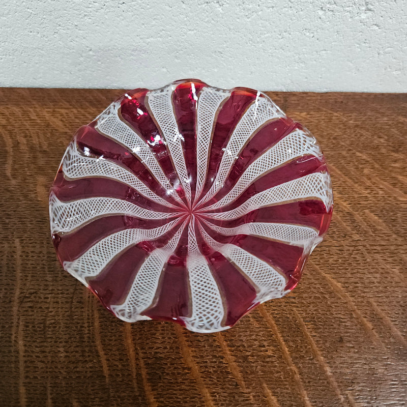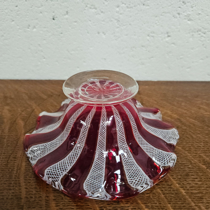 Red and white Murano Latticino bowl. In good original condition. Please view photos as they help form part of the description and condition.