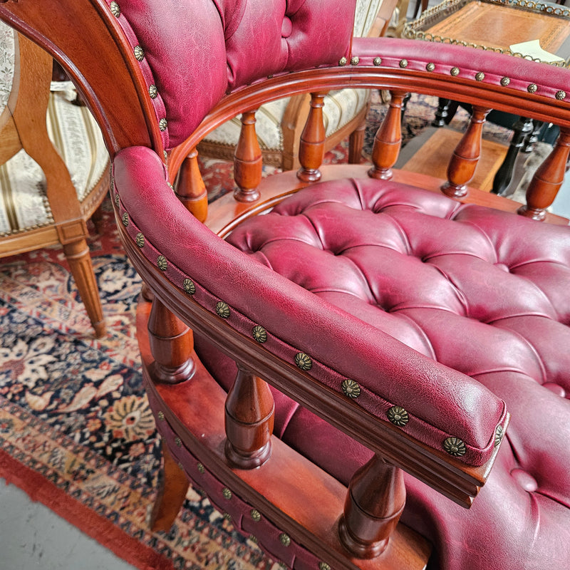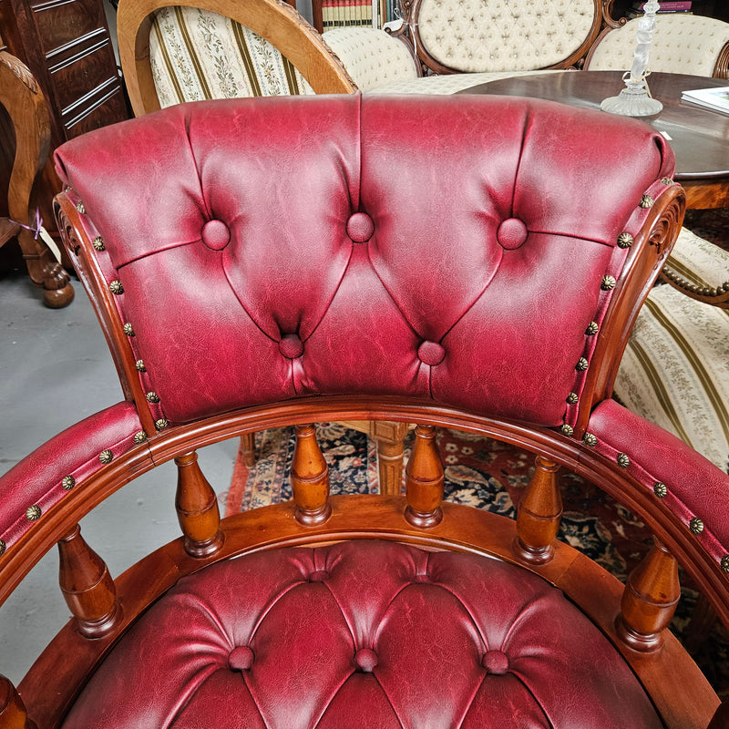 Reproduction Antique Style Fully Buttoned Leather Upholstery Desk/Captains Chair