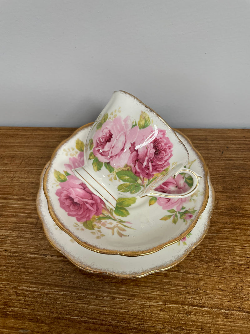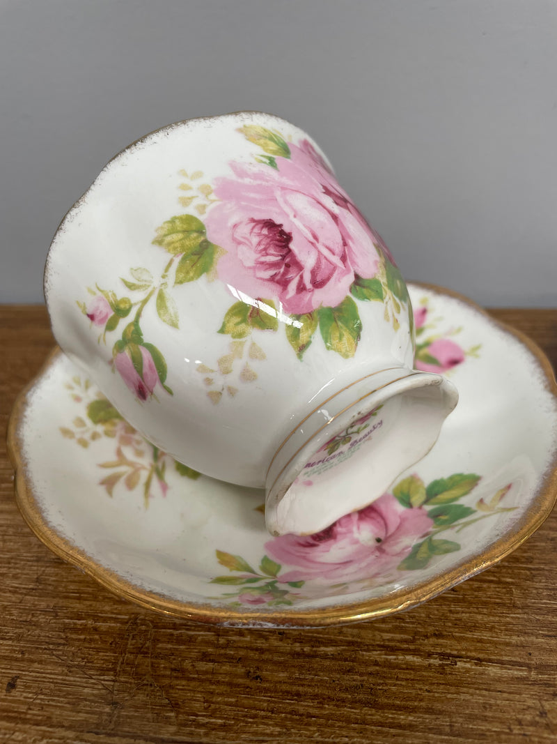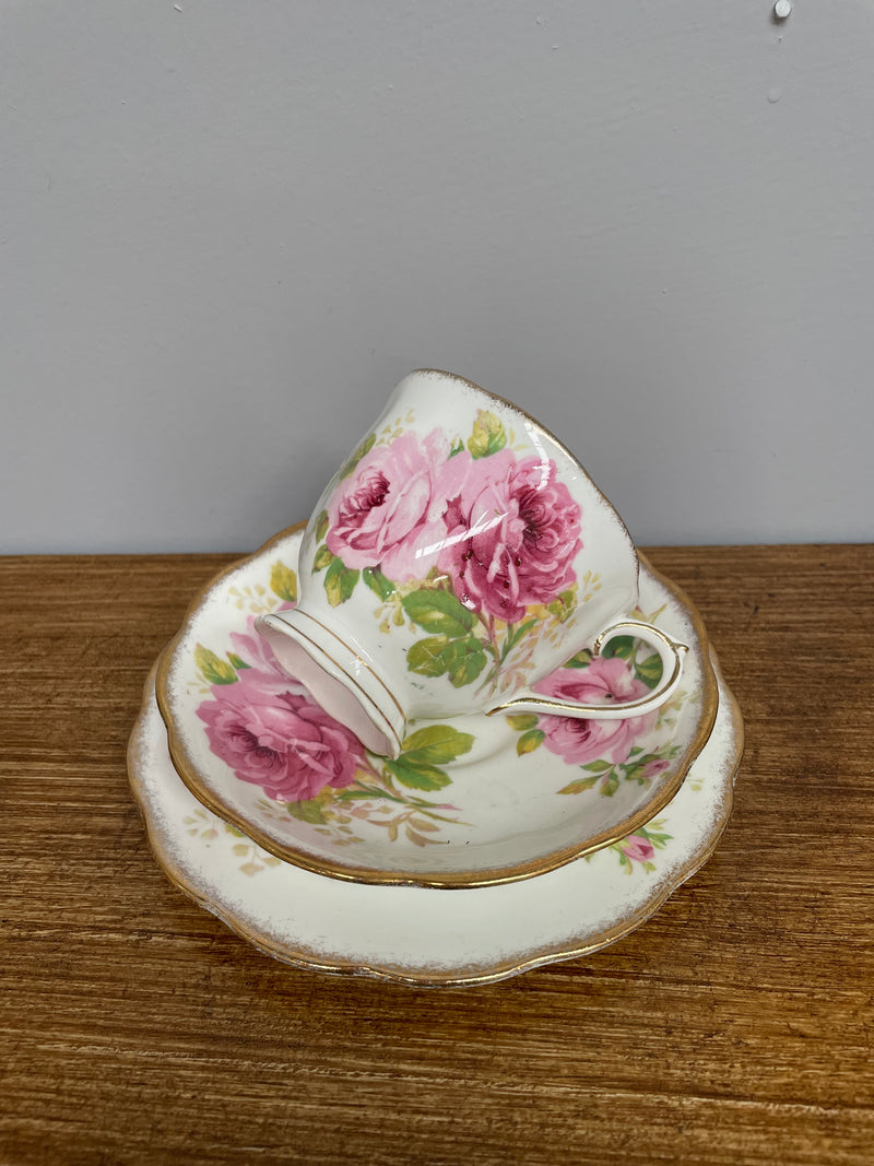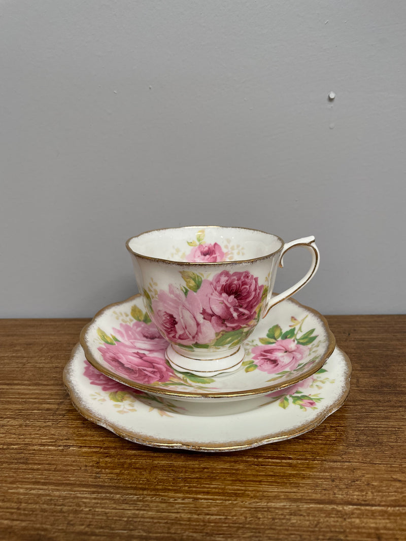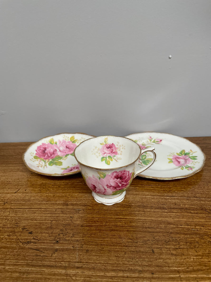 Charming Royal Albert "American Beauty" cup saucer and plate. In good condition. Please see photos as they form part of the description.