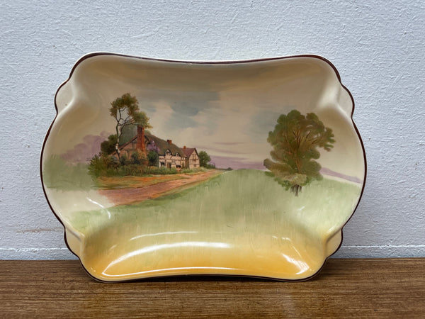 Made in England Royal Doulton decorative plate/bowl signed to base. It has a lovely country scene with a cottage style house. It is in good original condition. Please see photos as they form part of the description.