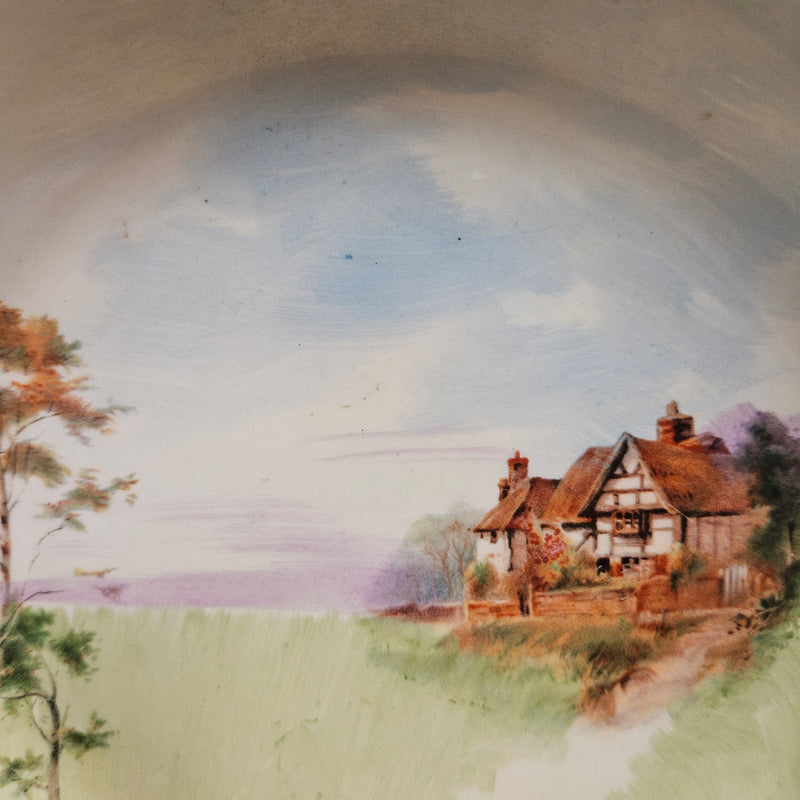 Beautiful English Royal Doulton signed bowl of a English Cottage and country scene. It is in good original condition with a couple or chips to the rim. Please see photos as they form part of the description.