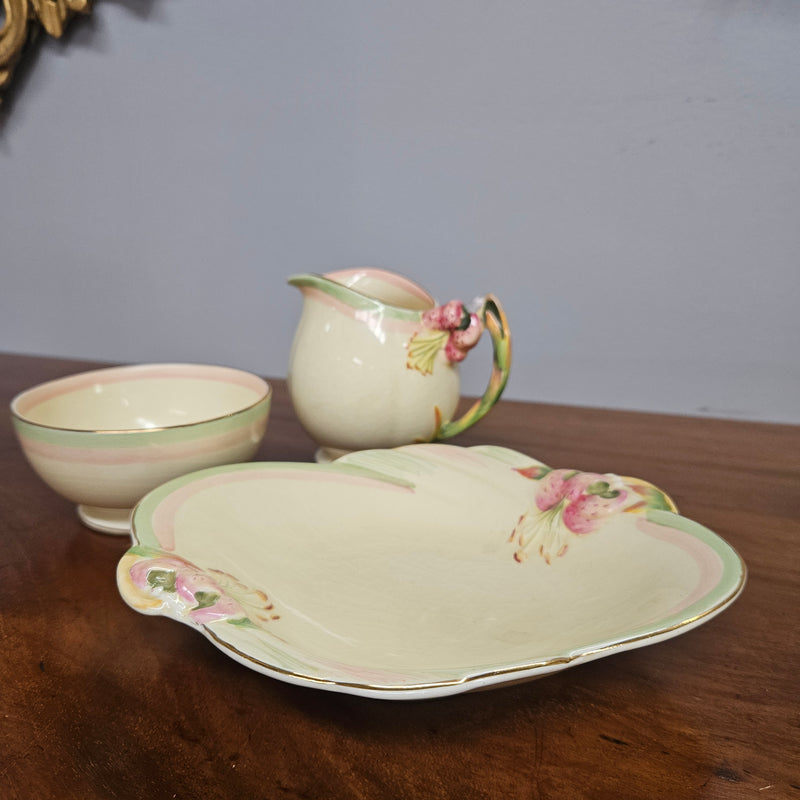 Royal Winton "Tiger Lily" Milk Jug, Sugar Bowl & Dish