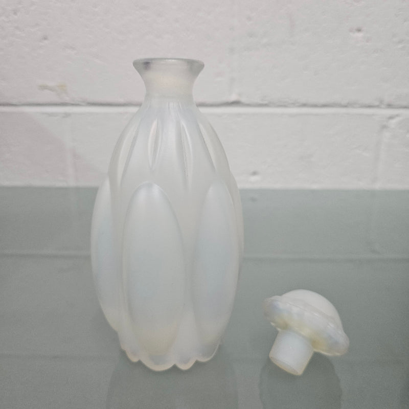 Sabino made in France art glass opalescent perfume bottle with stopper. It is in good original condition. There are no chips or cracks. It is in good original condition. Please see photos as they form part of the description.