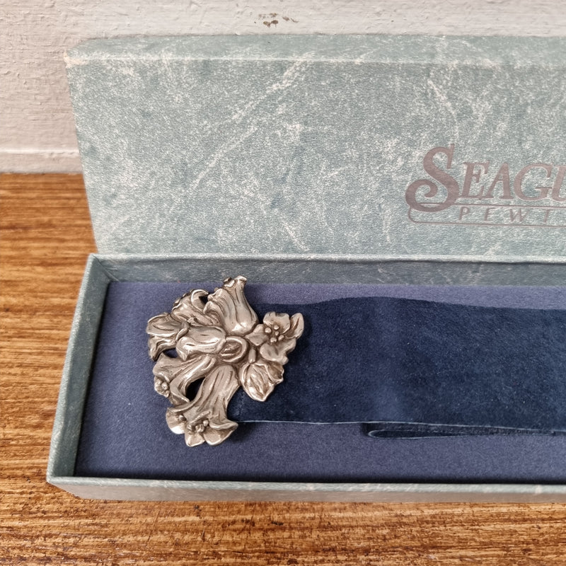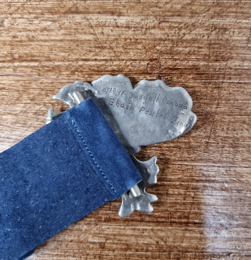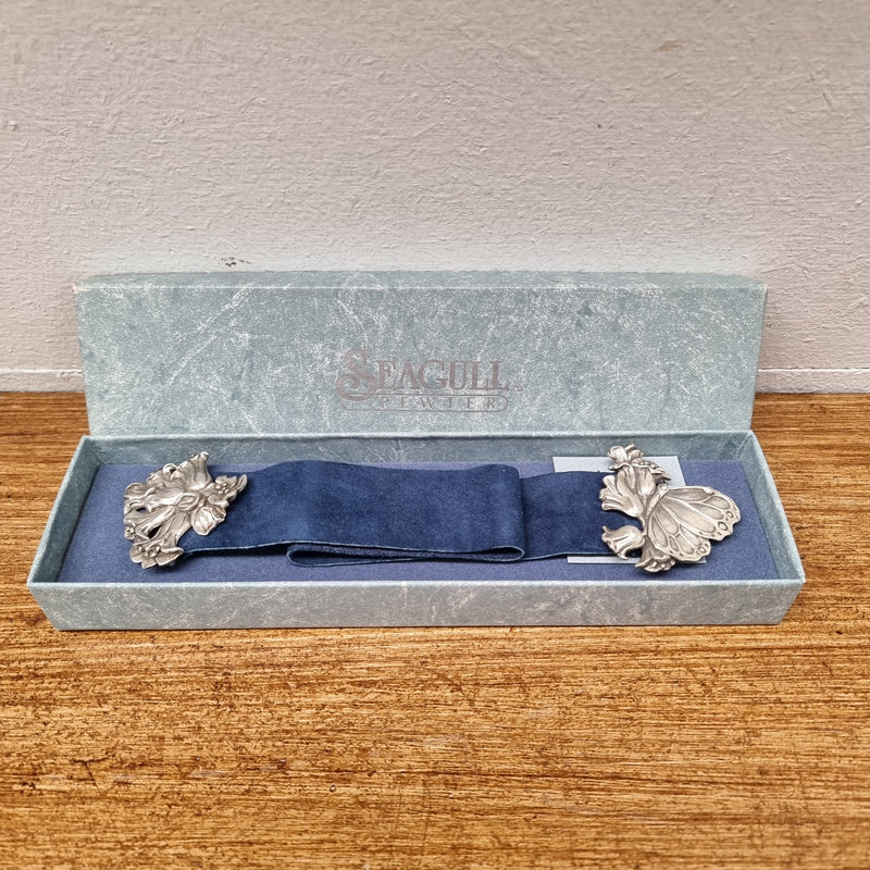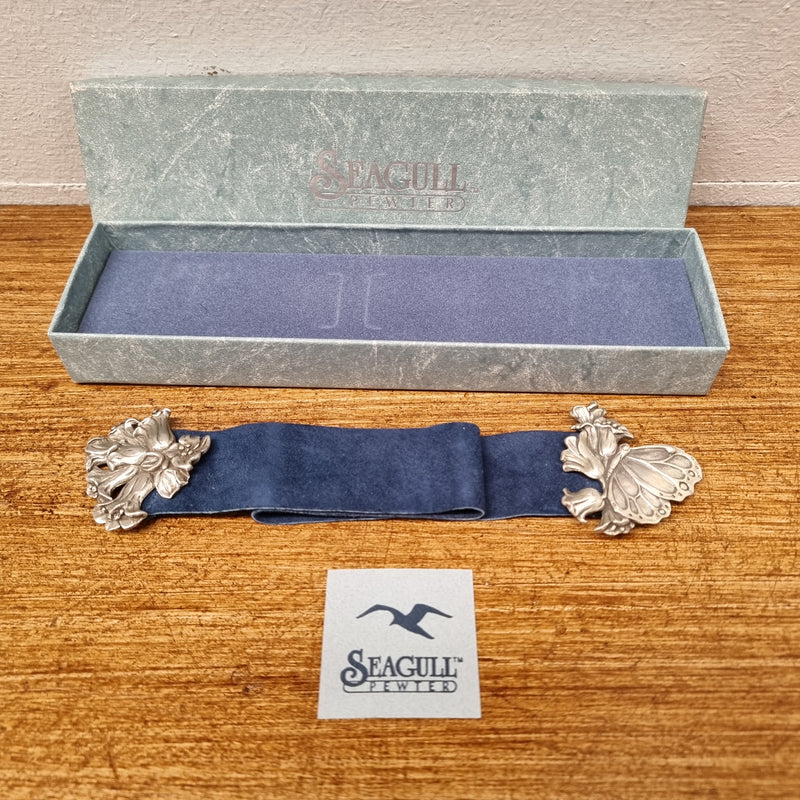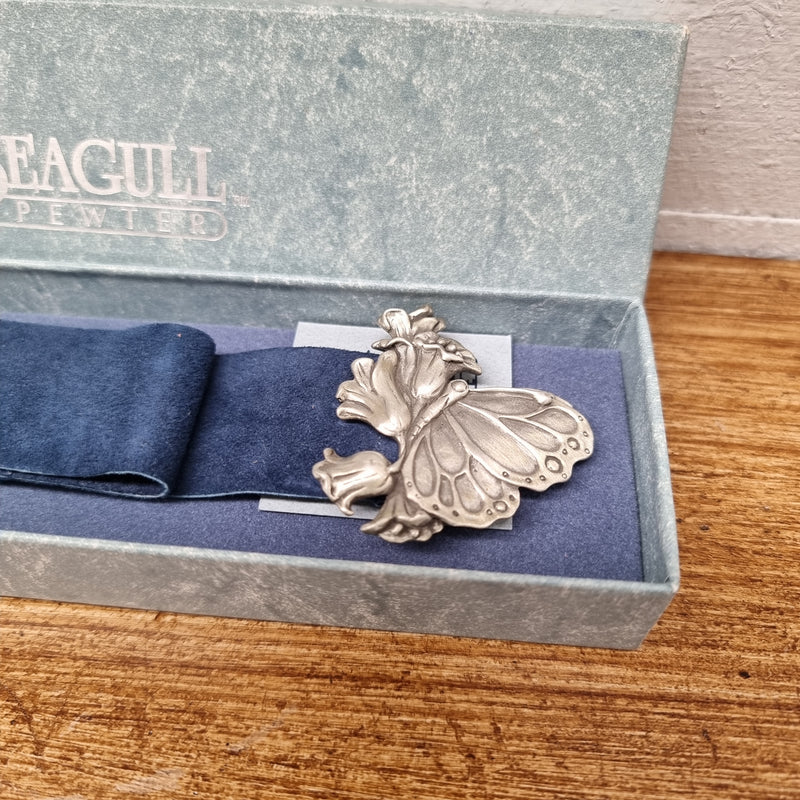 Pretty Seagull pewter suede bookmark featuring a butterfly and bluebells. In original box. In good original condition. Please see photos as they form part of the description.