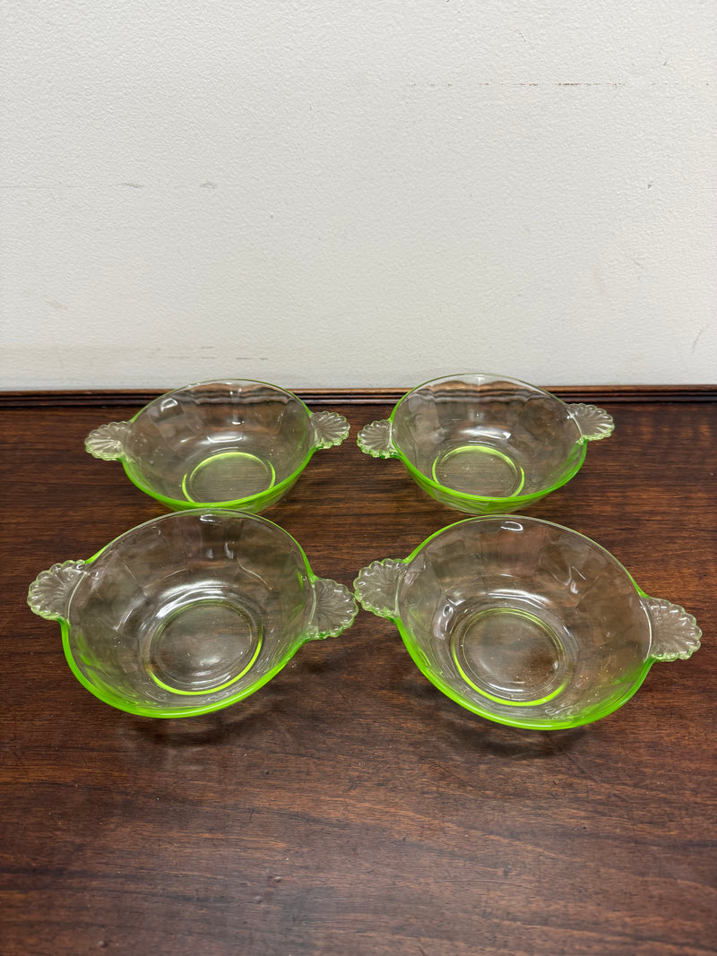 Set of four Uranium glass bowls, they are in good original condition. Please see photos as they form part of the description.