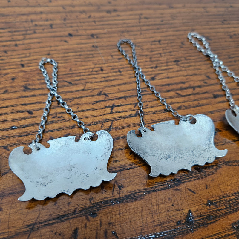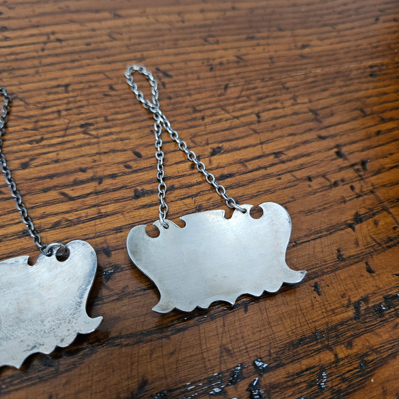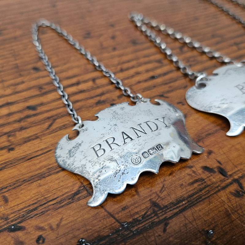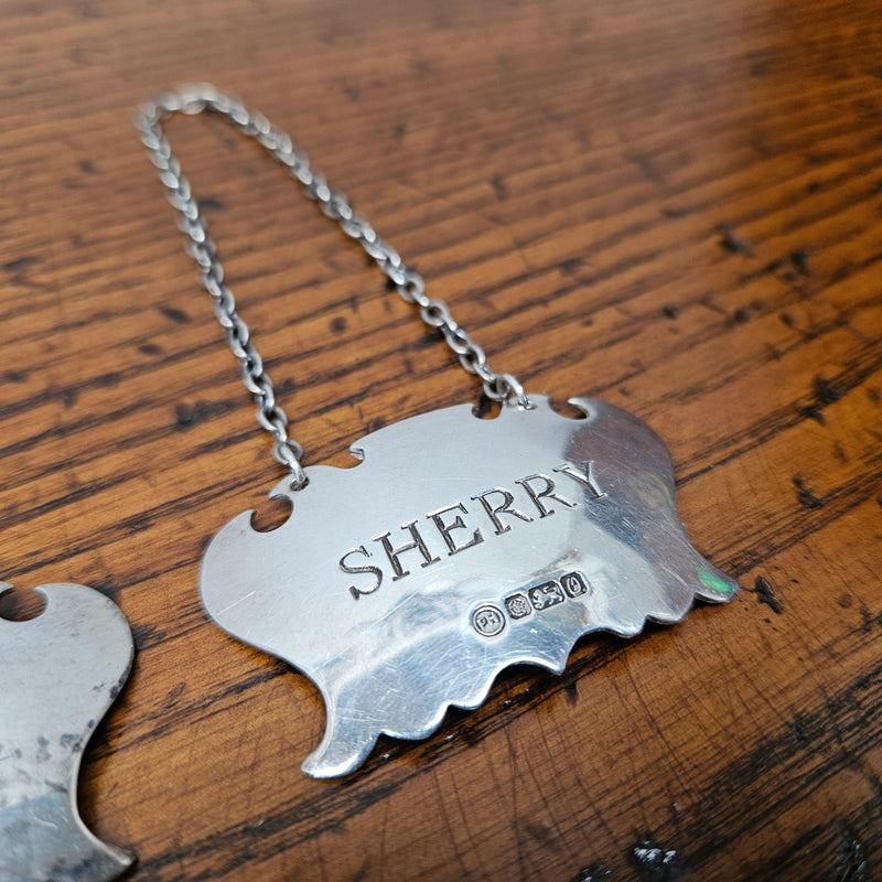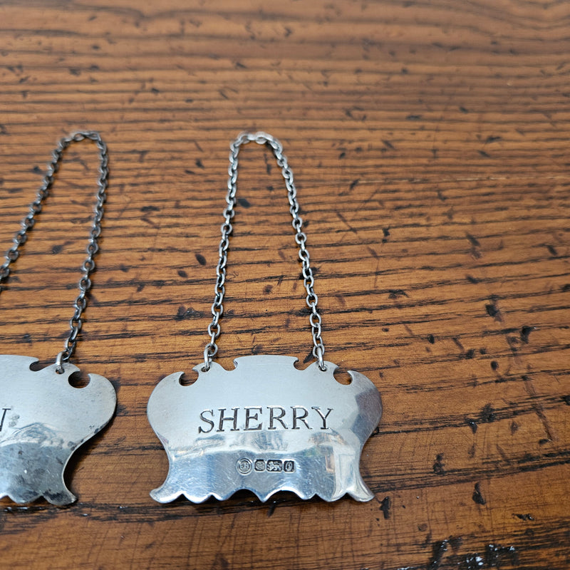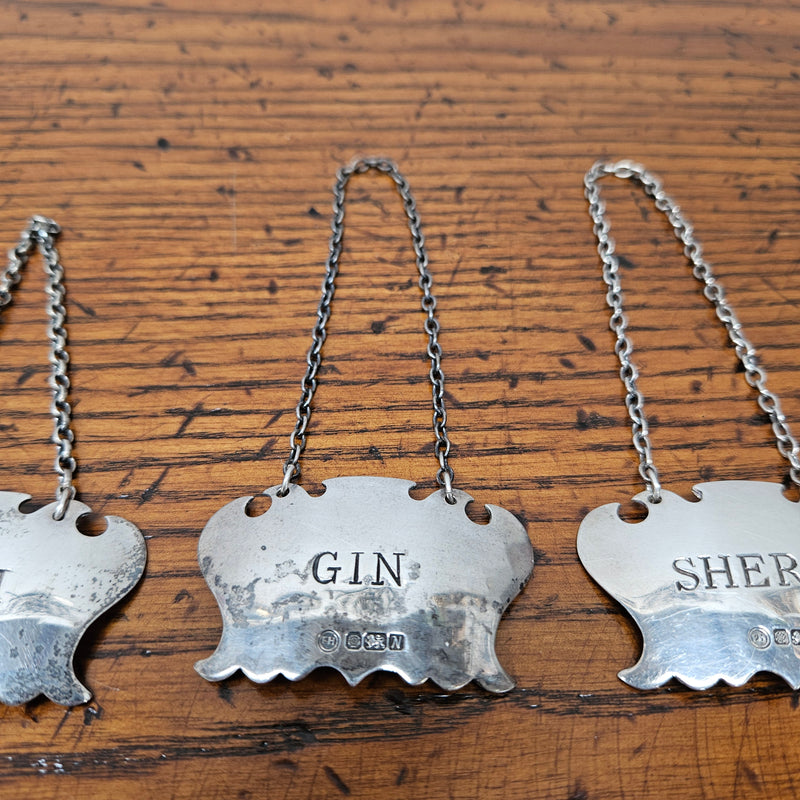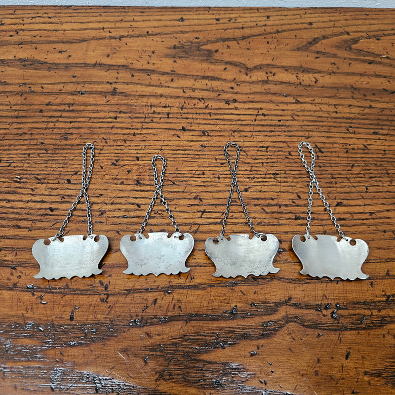 Vintage set of four Brandy, Sherry, Rum and Gin Scottish silver (925) labels for decanters or bottles, they are hallmarked and in good original condition. Please see photos as they form part of the description.