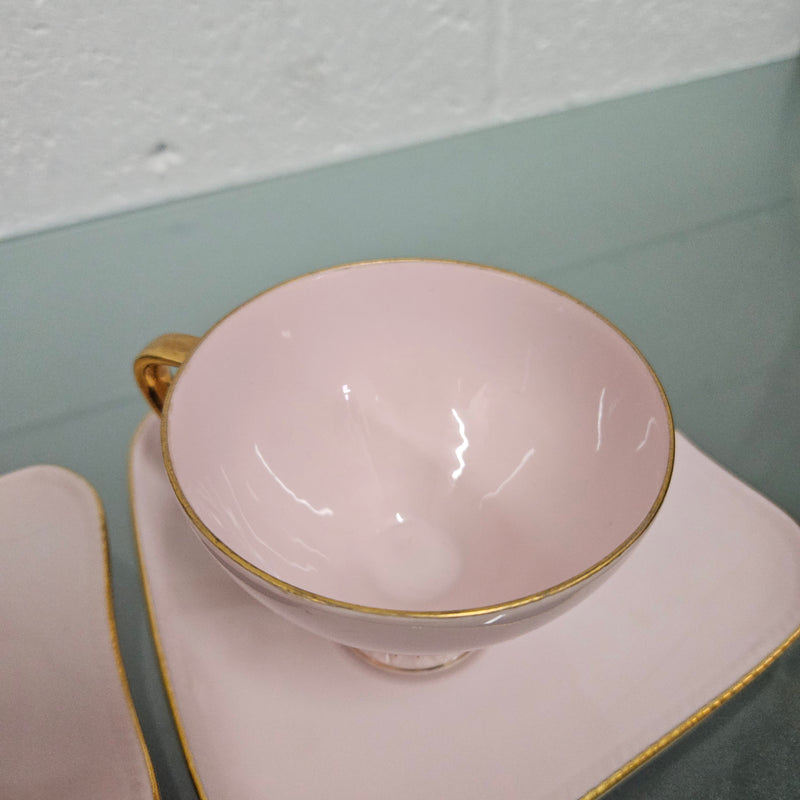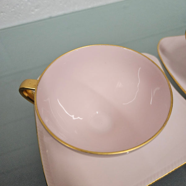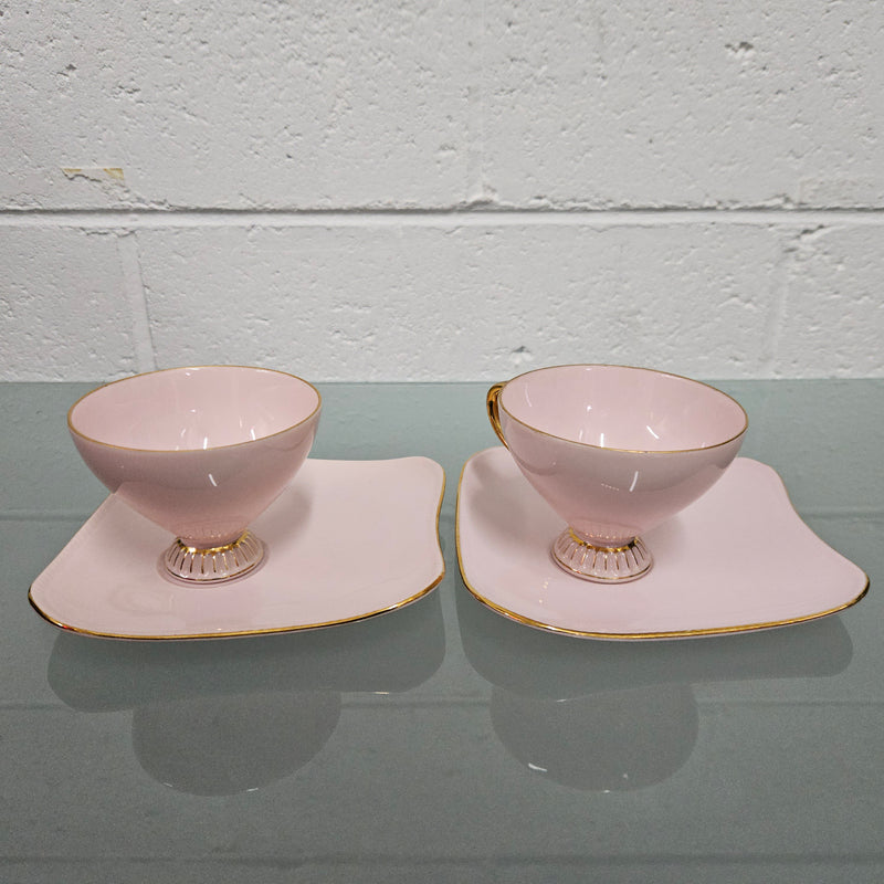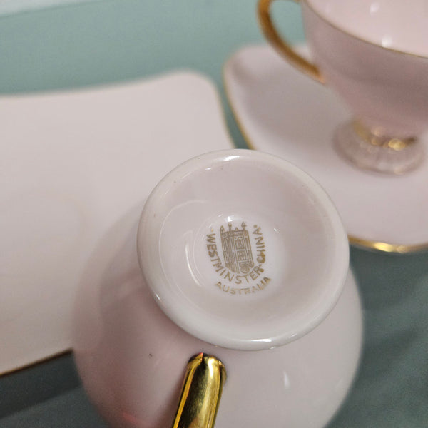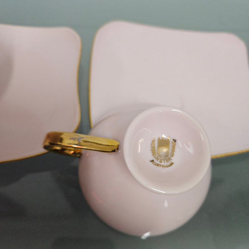 Lovely set of two pink Fine China West Minster Australia Mid Century cups and saucers. It is signed to the base. It is in good original condition. Please see photos as they form part of the description.