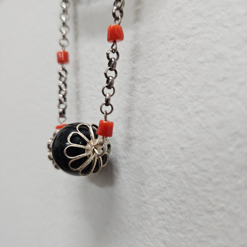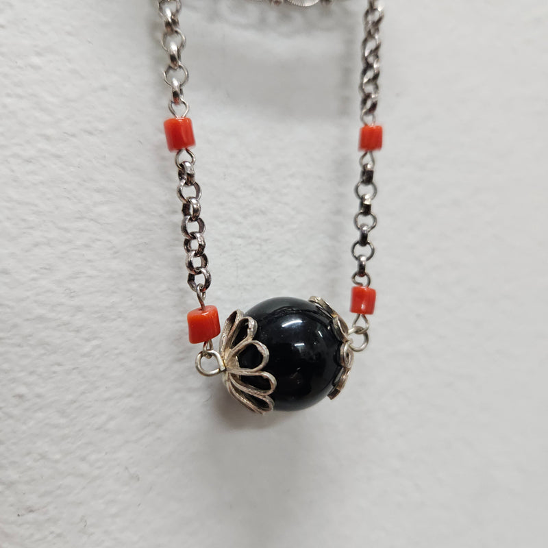 Pretty Silver filigree and bead brooch. In good condition. Please see photos as they form part of the description.