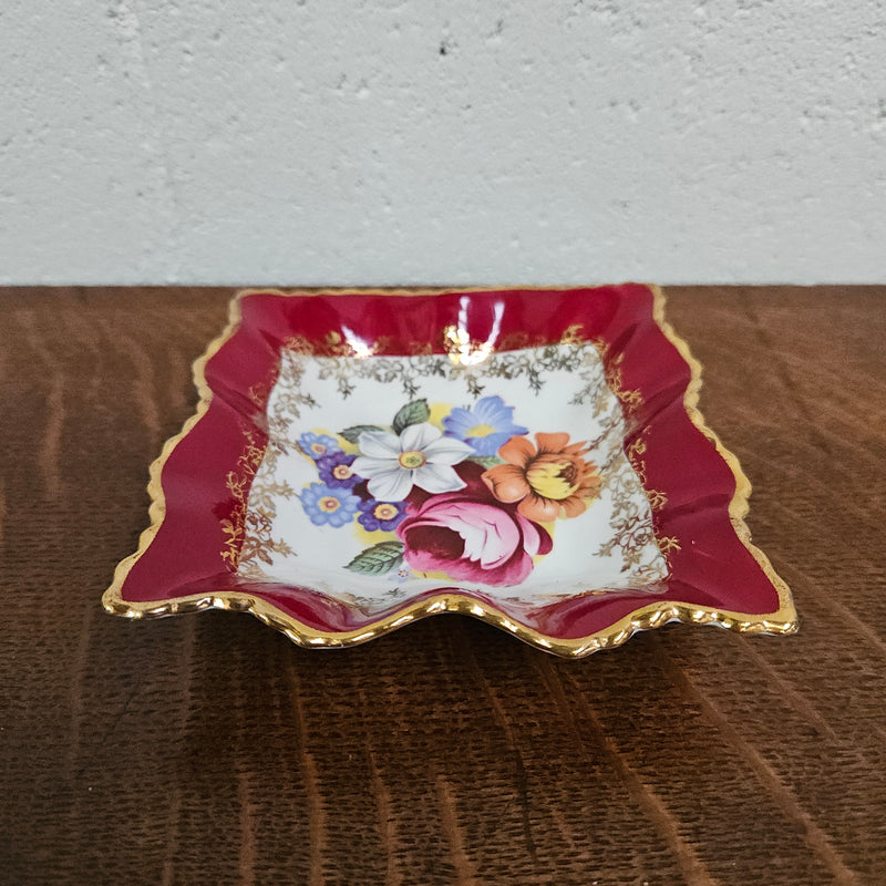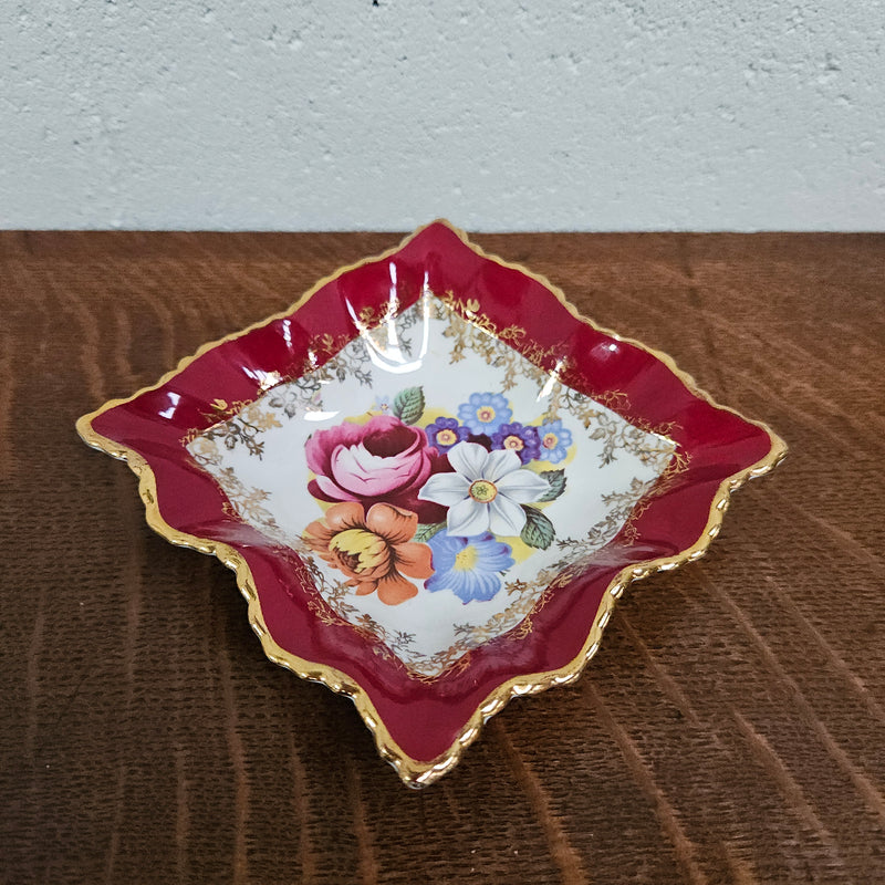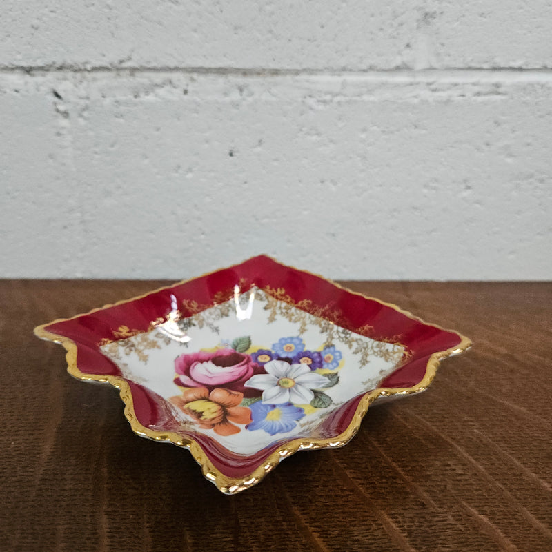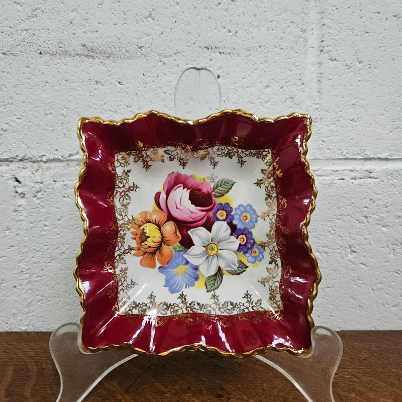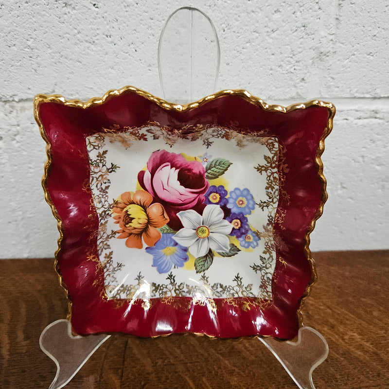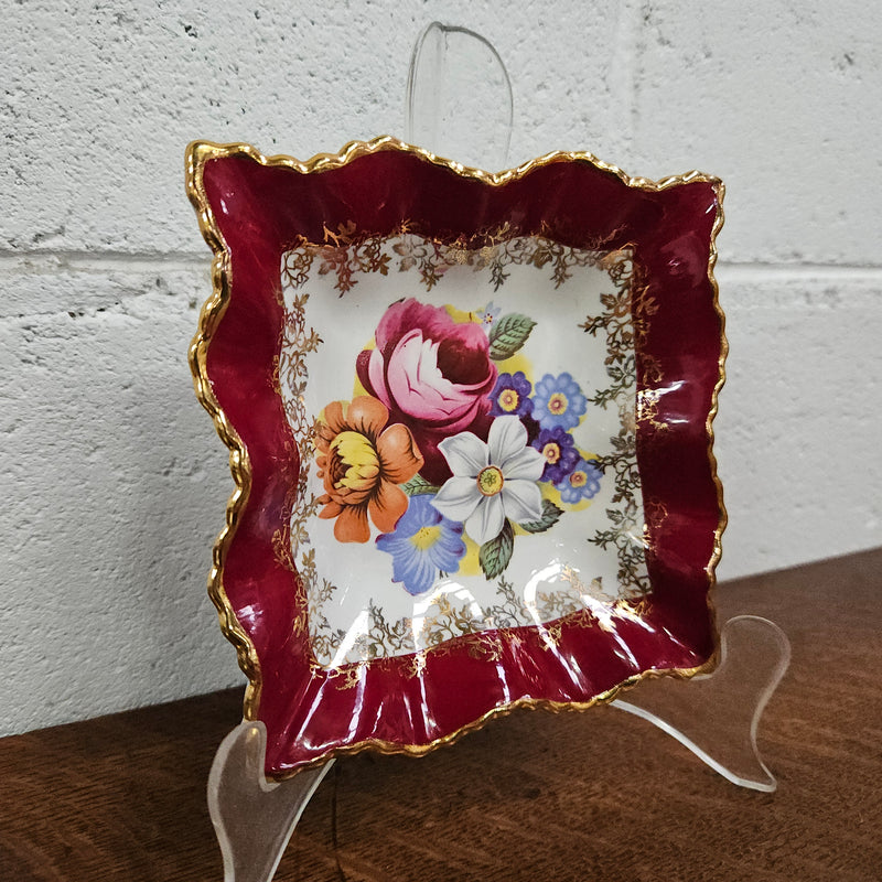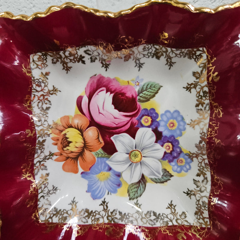 Lovely Old Foley Staffordshire Cermic England dish with maroon, gilding and floral design. It is in good original condition. Please see photos as they form part of the description.