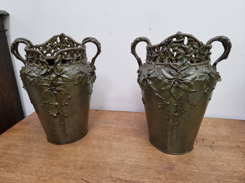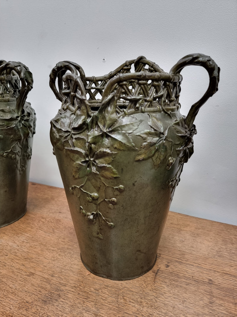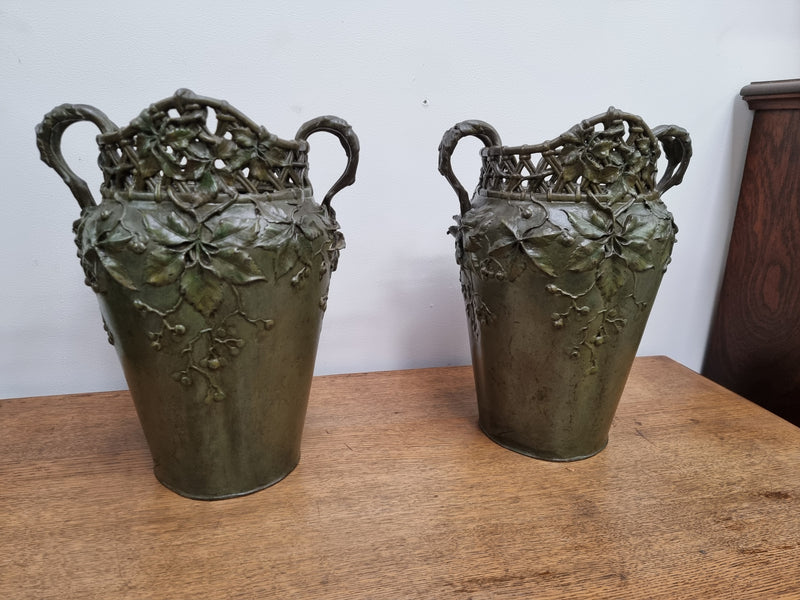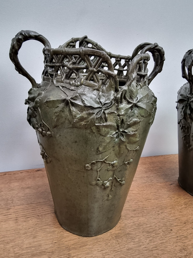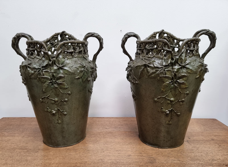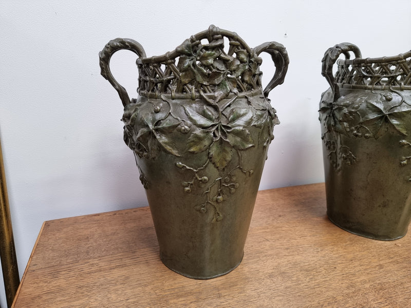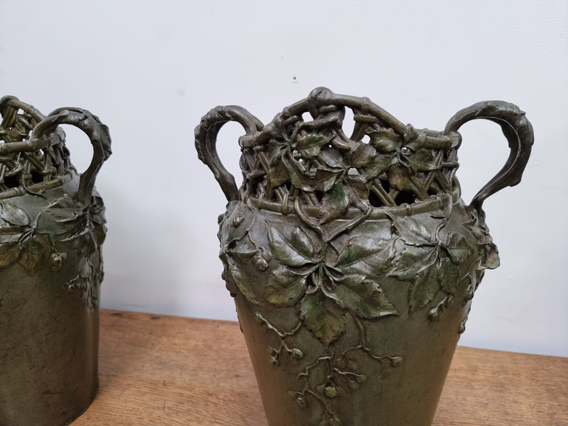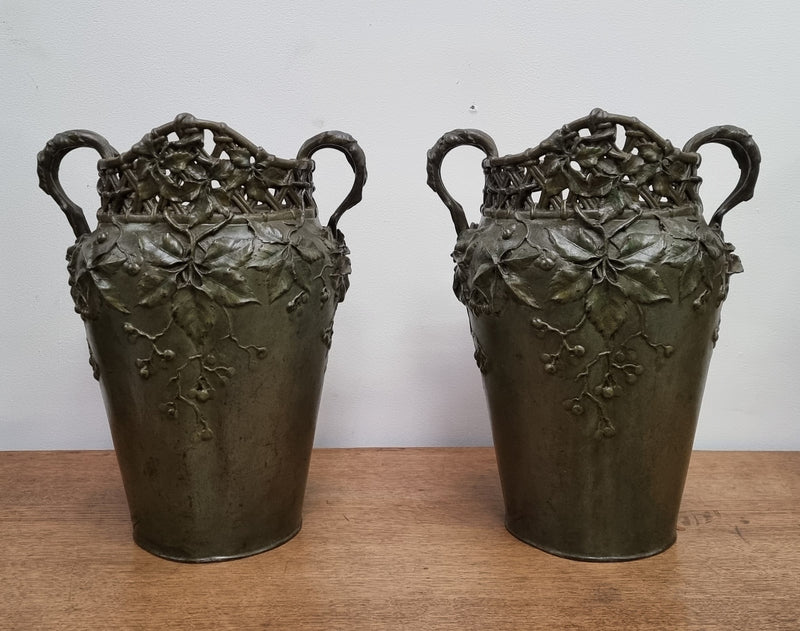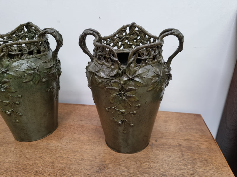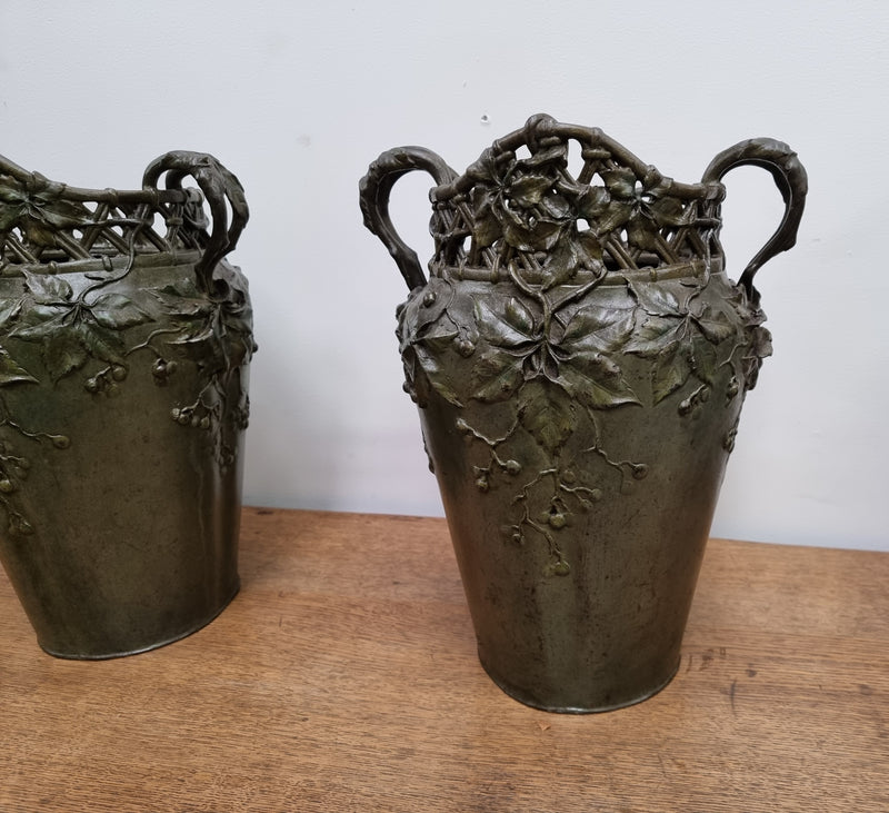 Stunning Pair Of Bronze Art Nouveau Vases by French Sculptor H. Bureau C:1890