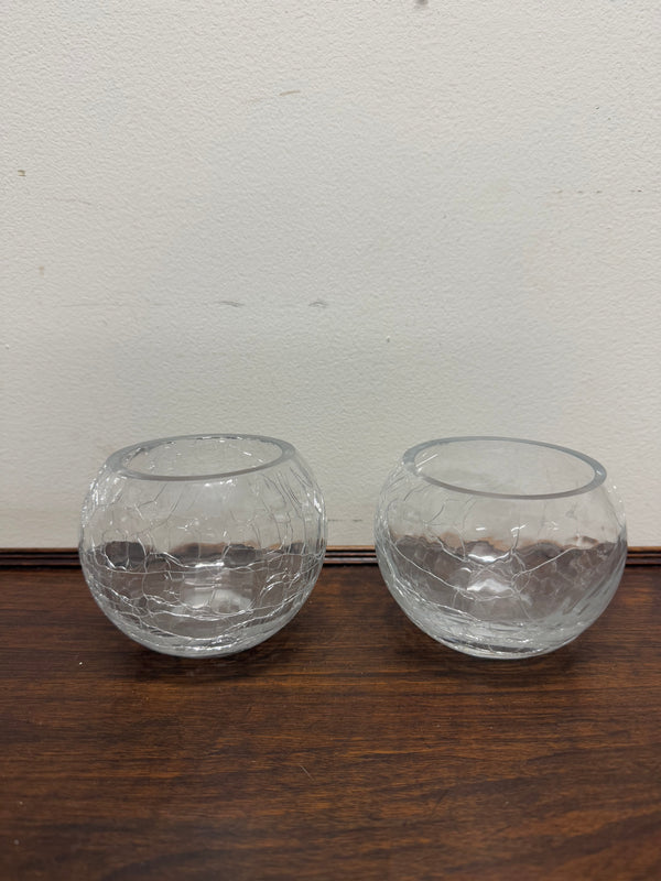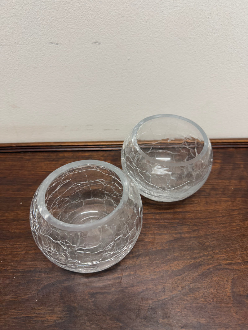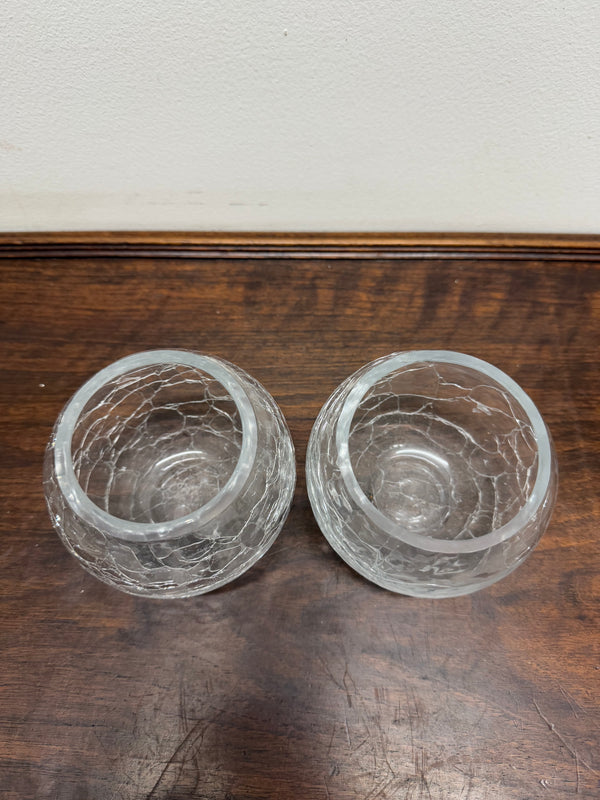 Vintage pair of crackle effect glass bowls, they are perfect to use as a tealight holder. One of the bowls have some chips on the rim, otherwise they are in good original condition. Please see photos as they form part of the description.