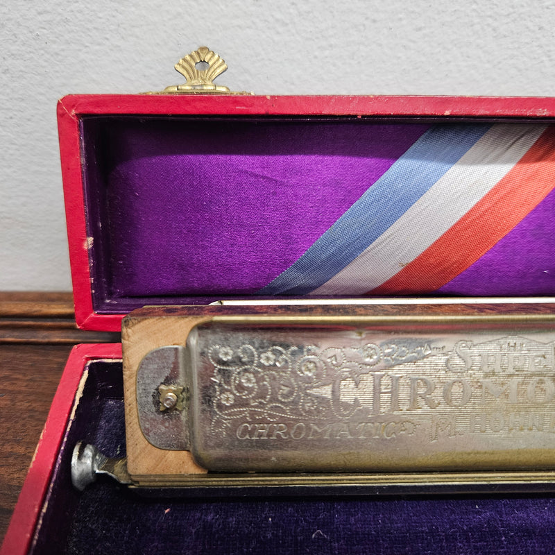 Super Chrominica Harmonica in original silk lined box. In good original condition. Please see photos as they form part of the description.