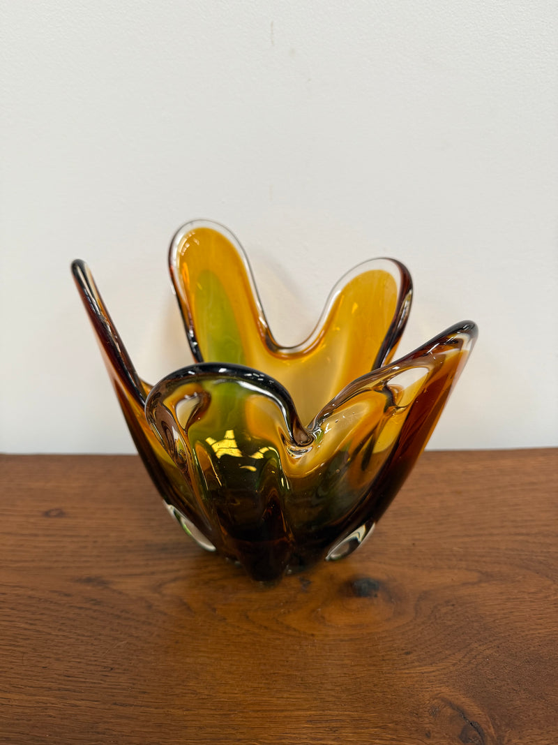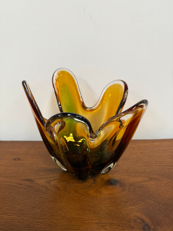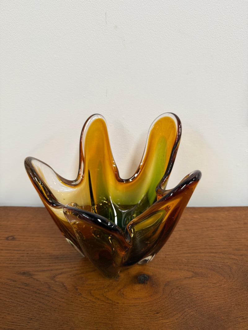 Beautiful tri-colour Murano finger glass vase/bowl. In good original condition with no chips or cracks. Please view photos as they help to form part of the description and condition.