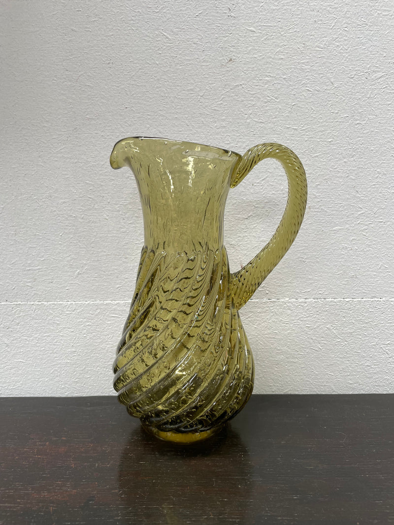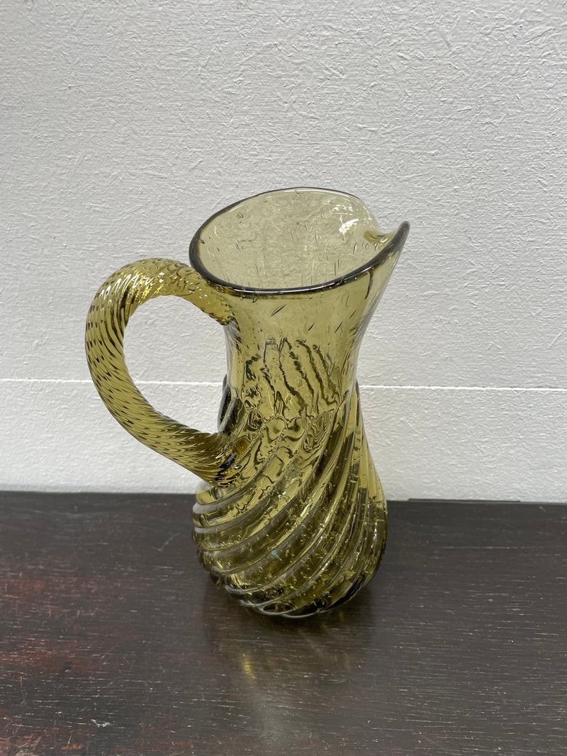 Beautiful hand made green twisted glass pitcher water jug, it is in good original condition. Please see photos as they form part of the description.