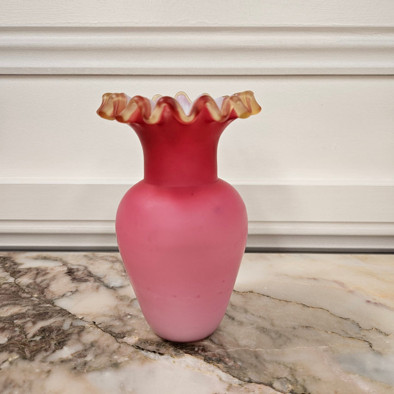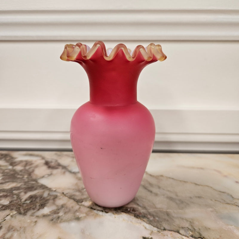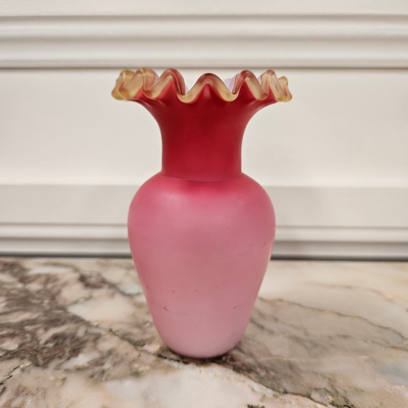 Beautiful Victorian satin ruby glass vase. In good original condition, please view photos as they help form part of the description