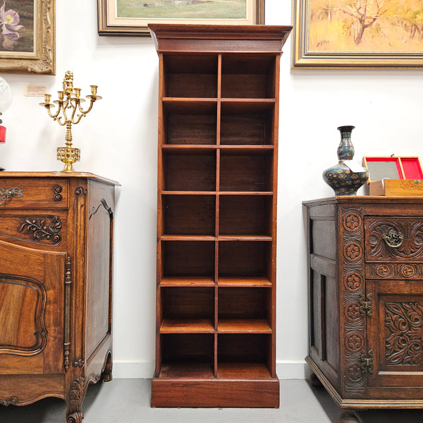 Australian Cedar post office pigeon holes, it has 14 pigeon holes and is in good original detailed condition with some signs of wear and age on the sides. Please view photos as they help to form part of the description and condition.