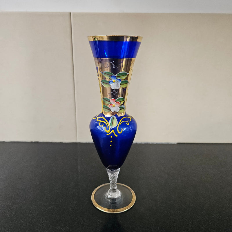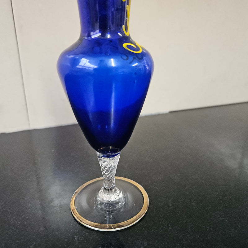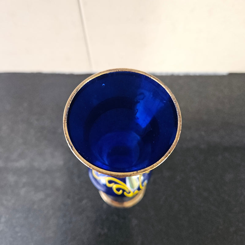 Lovely cobalt blue gilt and enamel vase with a floral design. It is in good original condition with some fading to the gilt. Please see photos as they form part of the description.