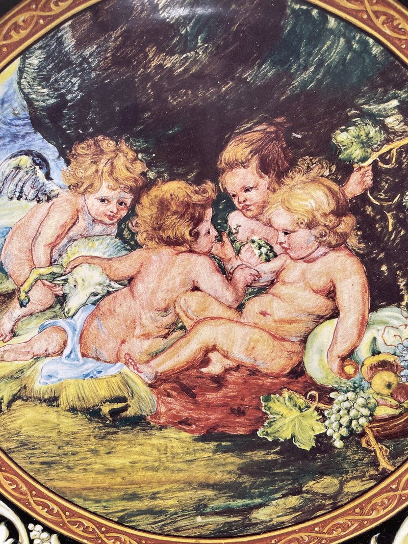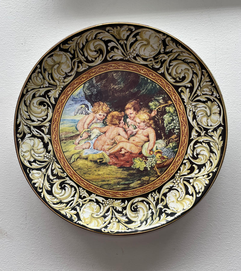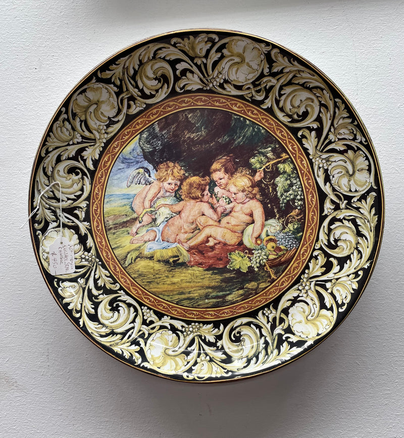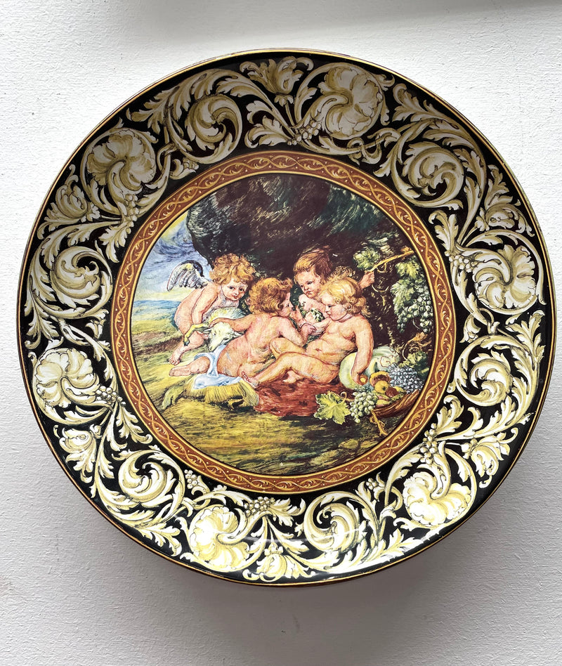 Fabulous Majolica Versace style Charger with cherubs in good condition and ready to hang. In good original condition, please view photos as they help form part of the description.