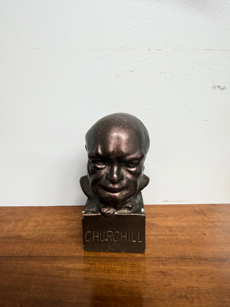 Unusual Bronzed Cast Iron Churchill Bust Paperweight