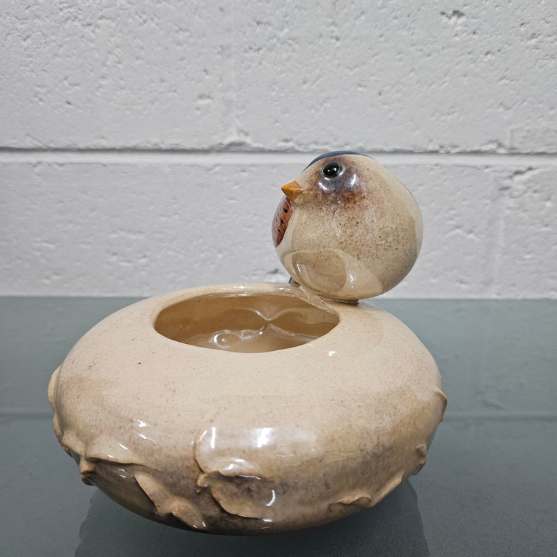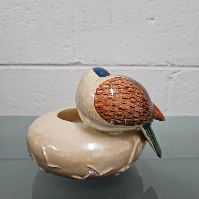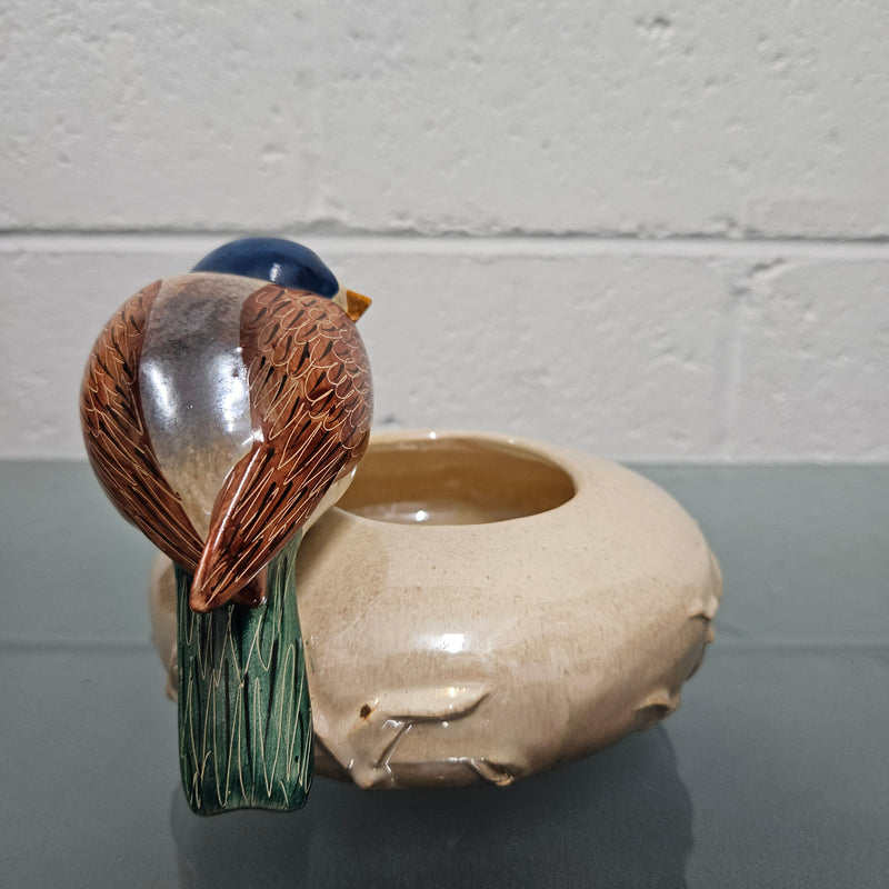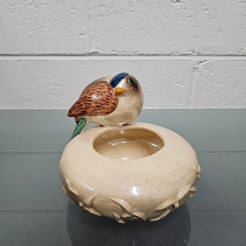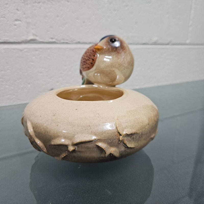 Unusual hand made and hand painted bird bowl. Signed to the base "Noelle" In good original condition. Please see photos as they form part of the description.
