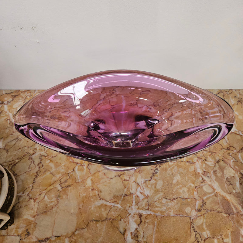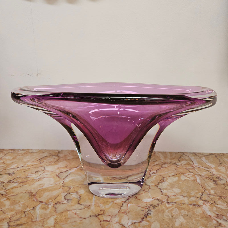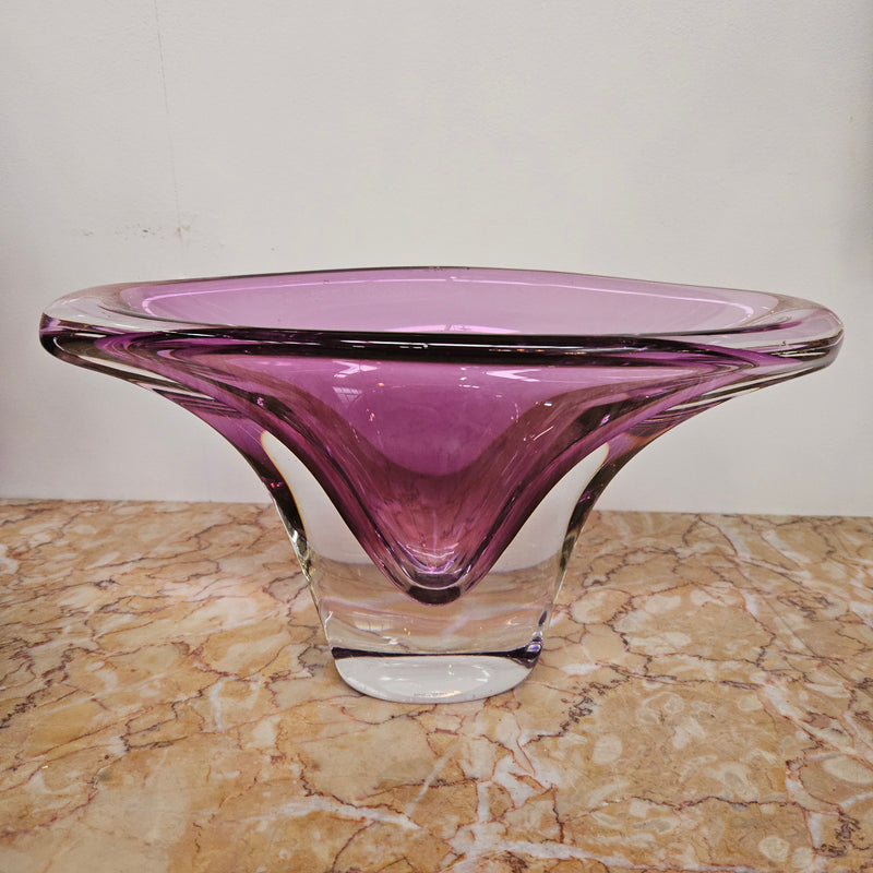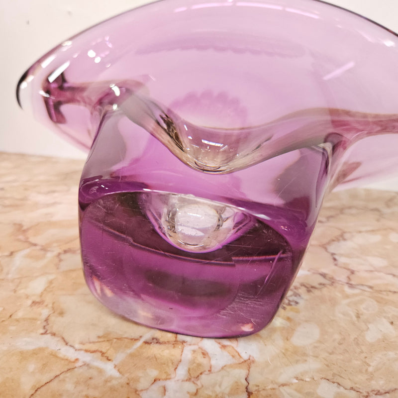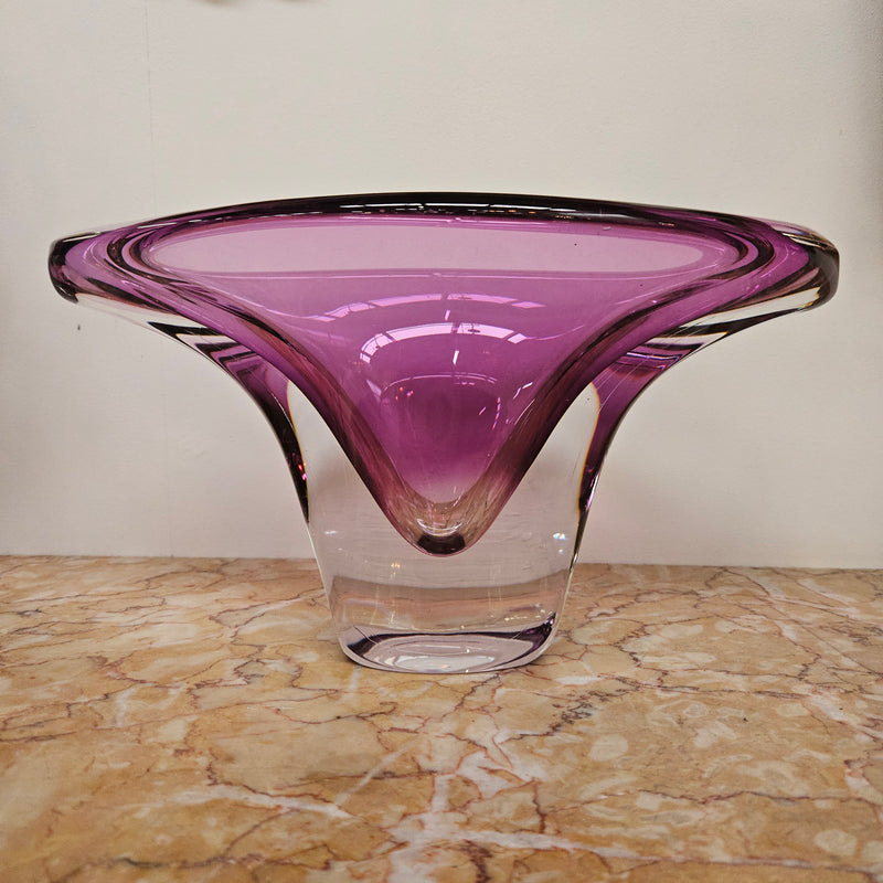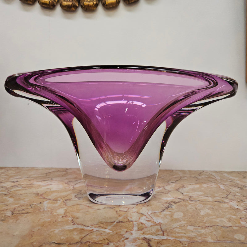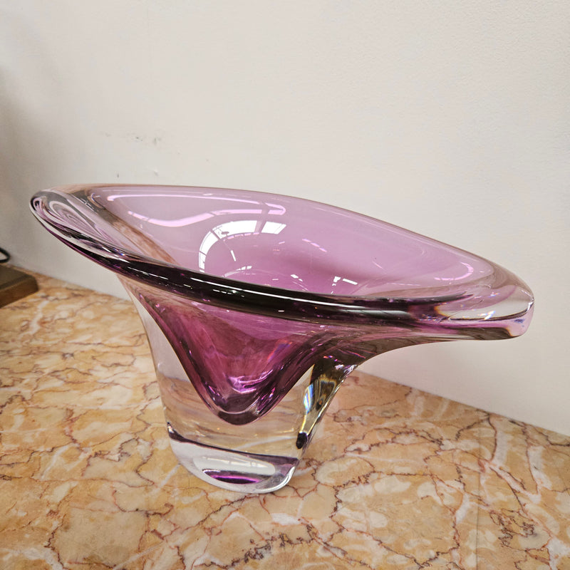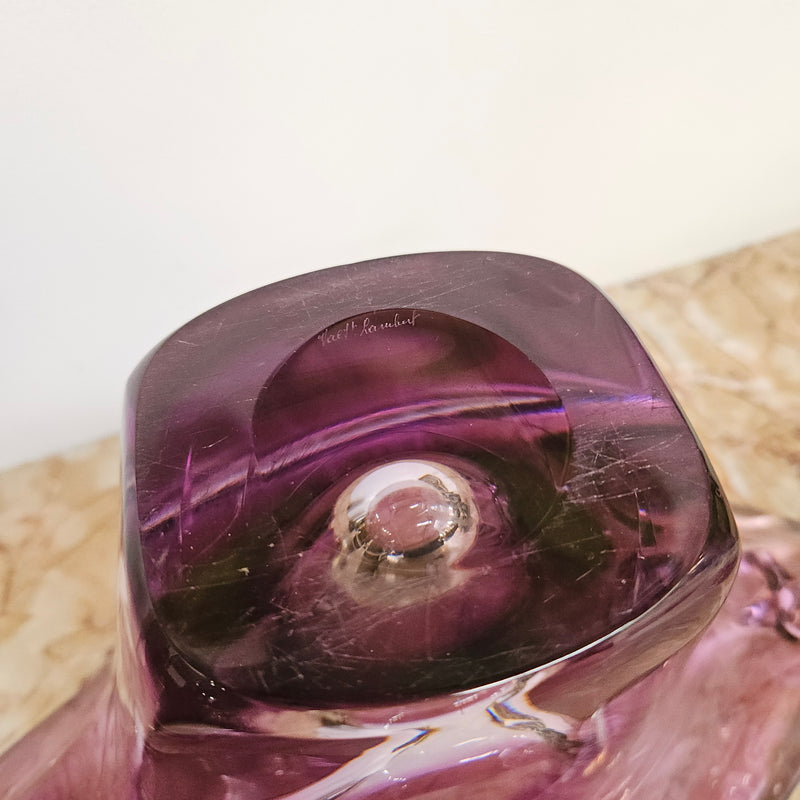 Beautiful violet blown art glass Val Lambert vase, it is signed underneath and in very good original condition with some wear to base. Please see photos as they form part of the description