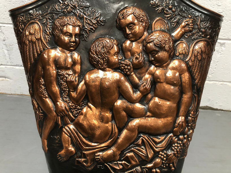 Very decorative French Copper Cupid decorated umbrella/stick stand . In very good original condition.