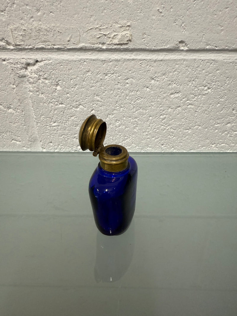 Lovely Victorian blue glass and metal stopper scent bottle, it is in good original condition. Please see photos as they form part of the description.