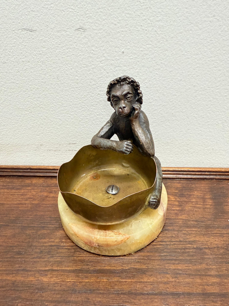 Charming Victorian monkey at the well with pensive expression on his face. He is mounted on a marble base. In good original condition. Please see photos as they form part of the description.