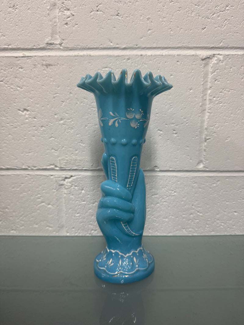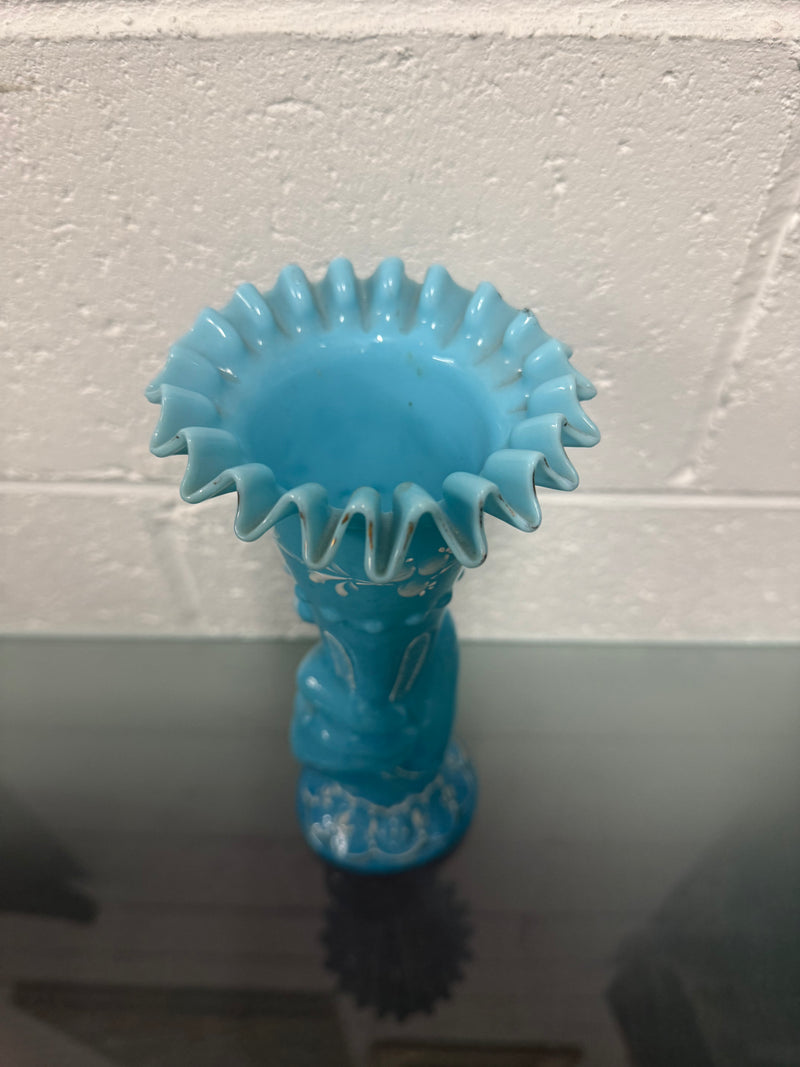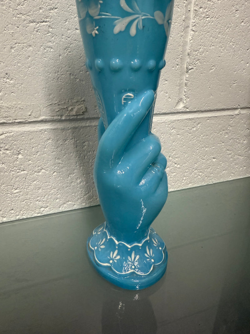 Victorian blue opaline hand painted enamel hand vase. In good original condition. Please see photos as they form part of the description.
