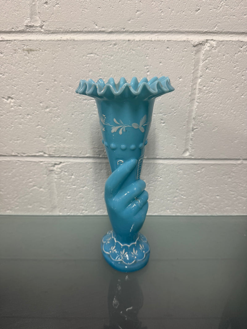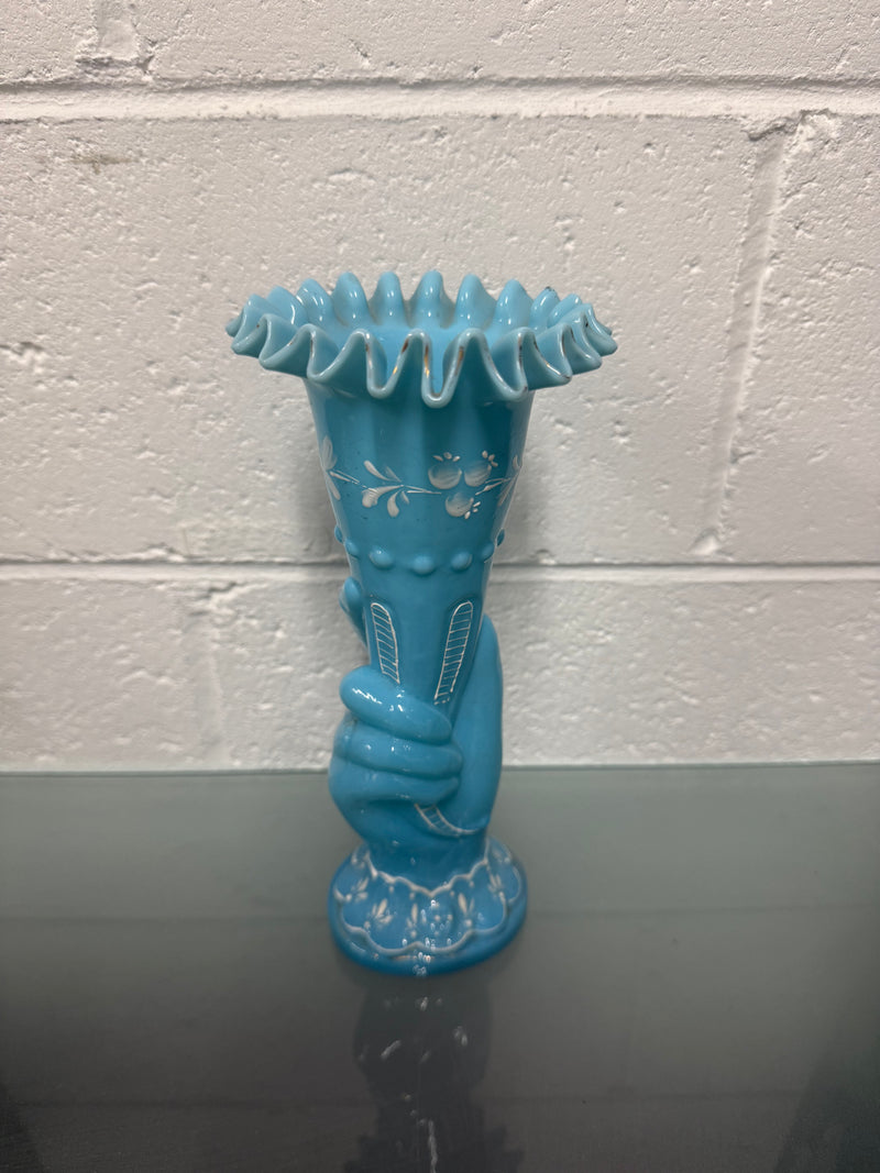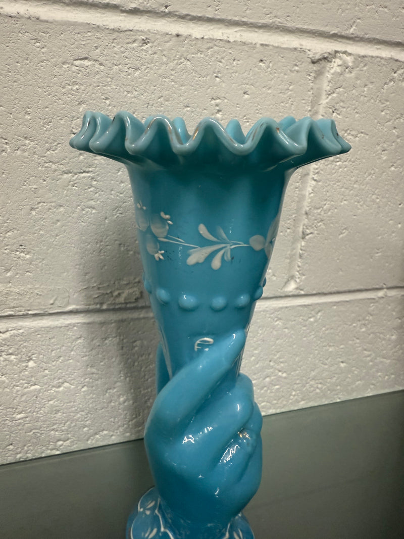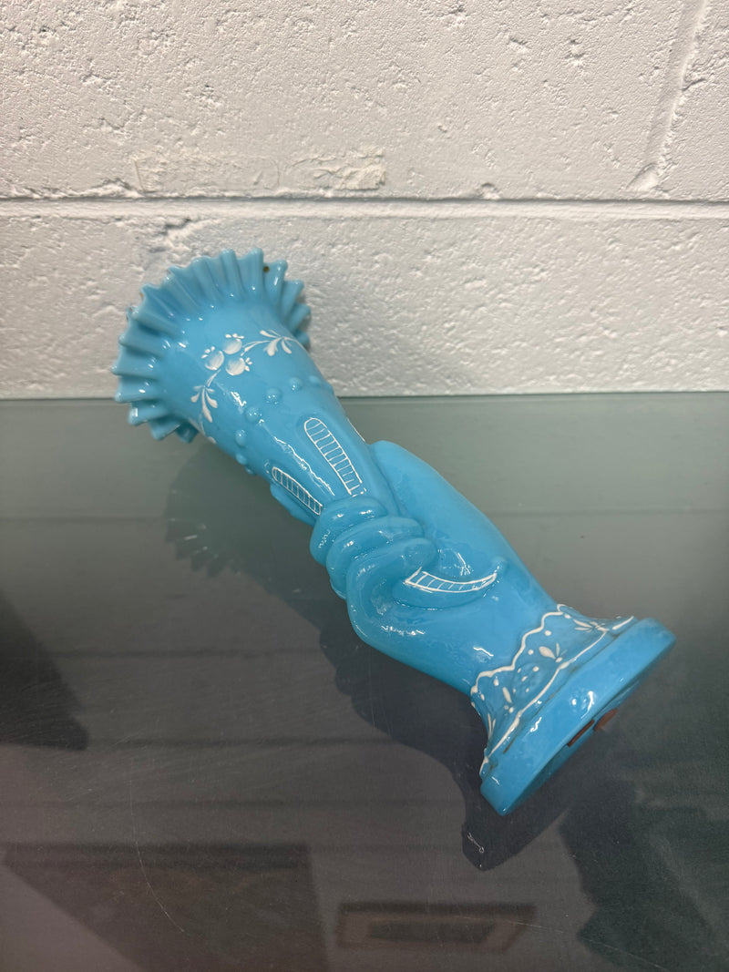 Victorian Opaline Hand Painted Enamel Hand Vase