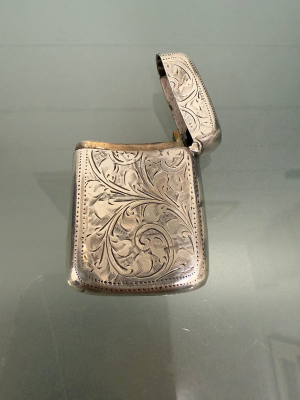 Fully hallmarked Victoria sterling silver engraved vesta case with match striker. Birmingham 1898. In good original condition. Please see photos as they form part of the description. BOX NOT INCLUDED
