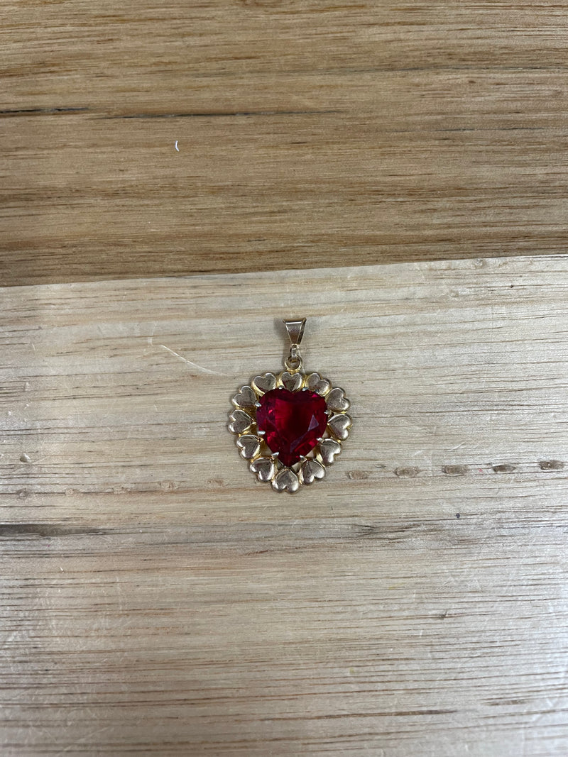 Pretty vintage 9ct gold lined heart shaped red stone pendant. In good condition. Please see photos as they form part of the description.