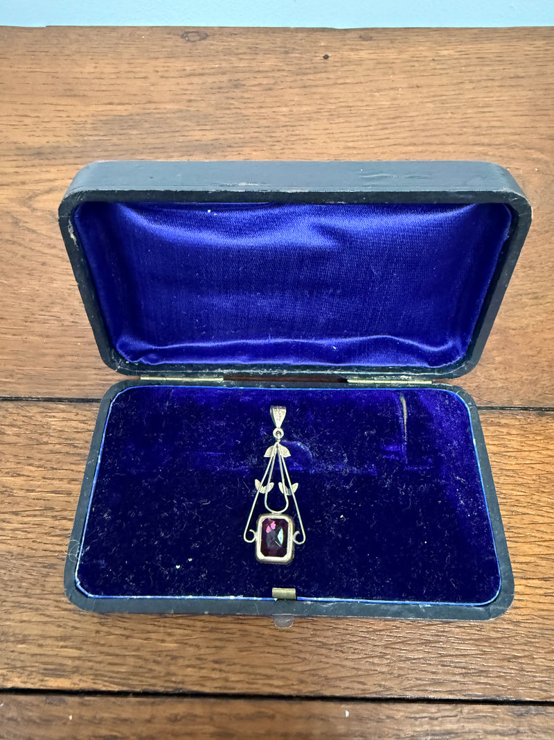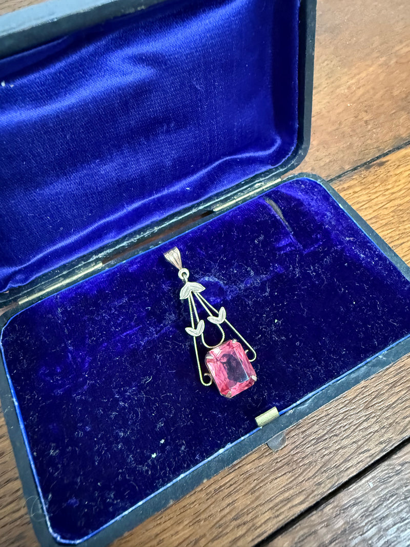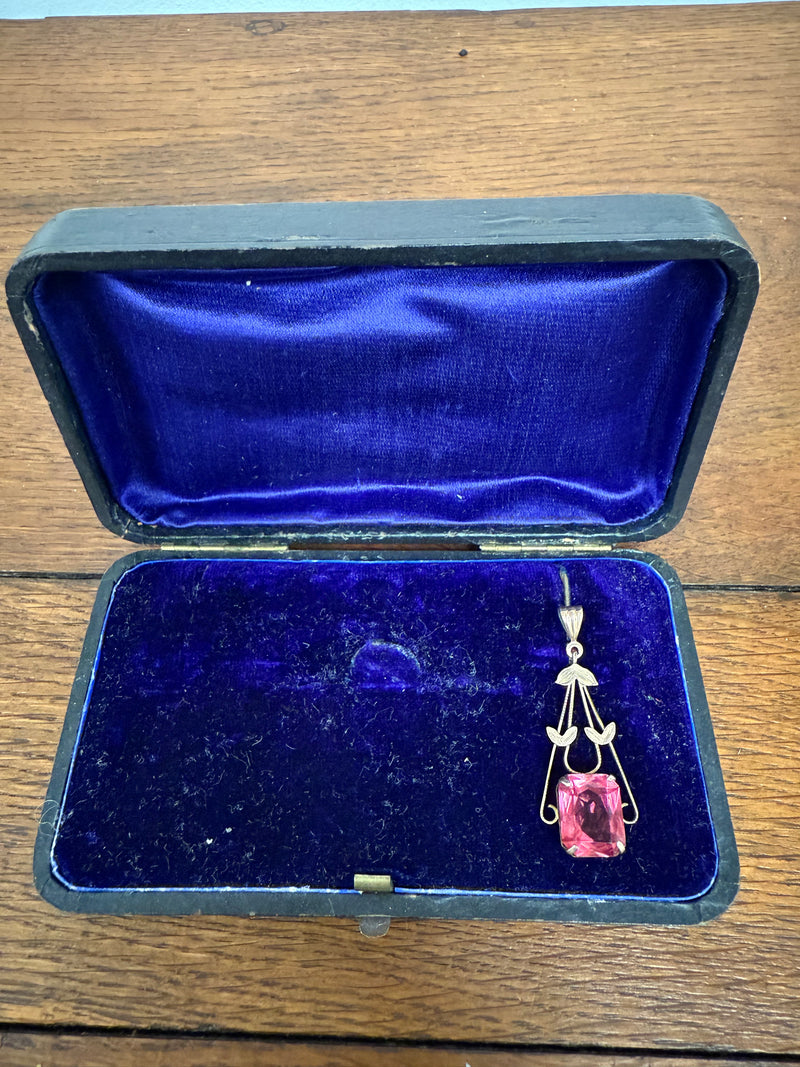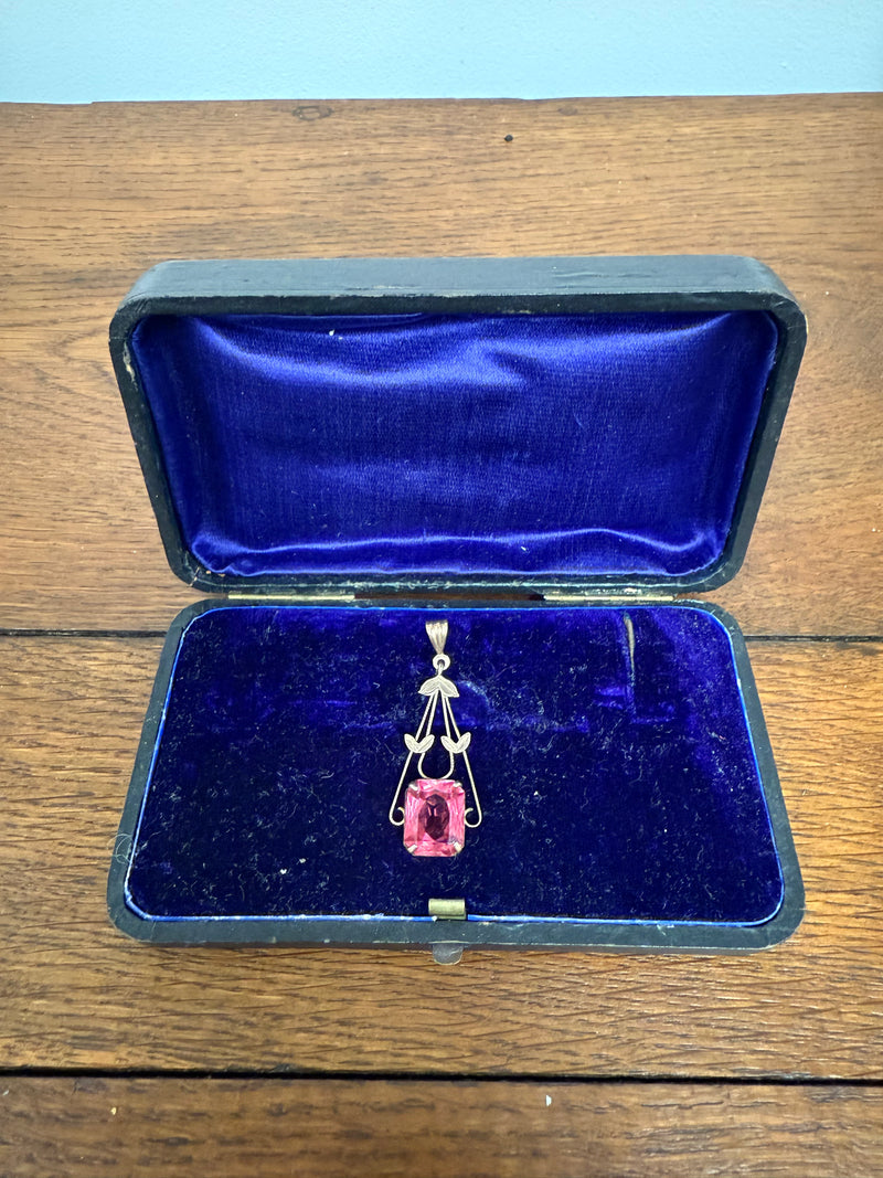 Vintage 9ct Silver Lined Pendant With Pink/Red Stone