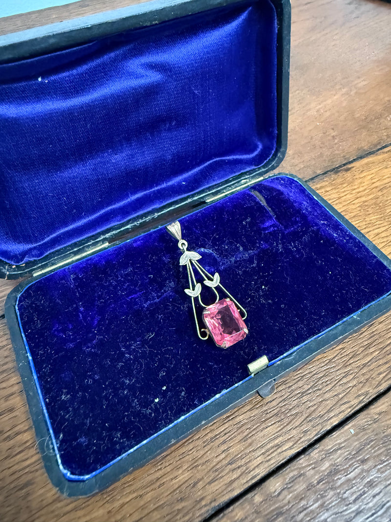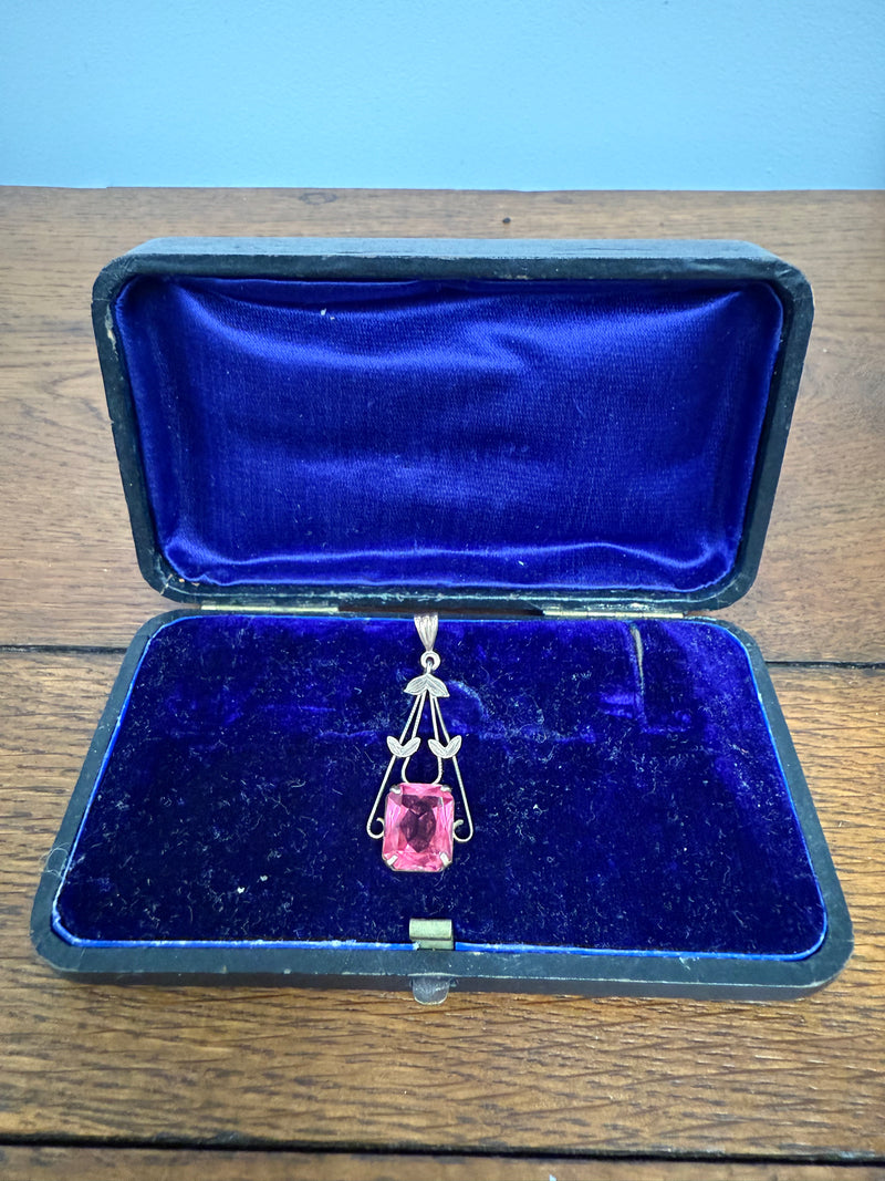 Attractive vintage 9ct silver lined pendant with pink/red stone. In good original condition. Please see photos as they form part of the description and condition.