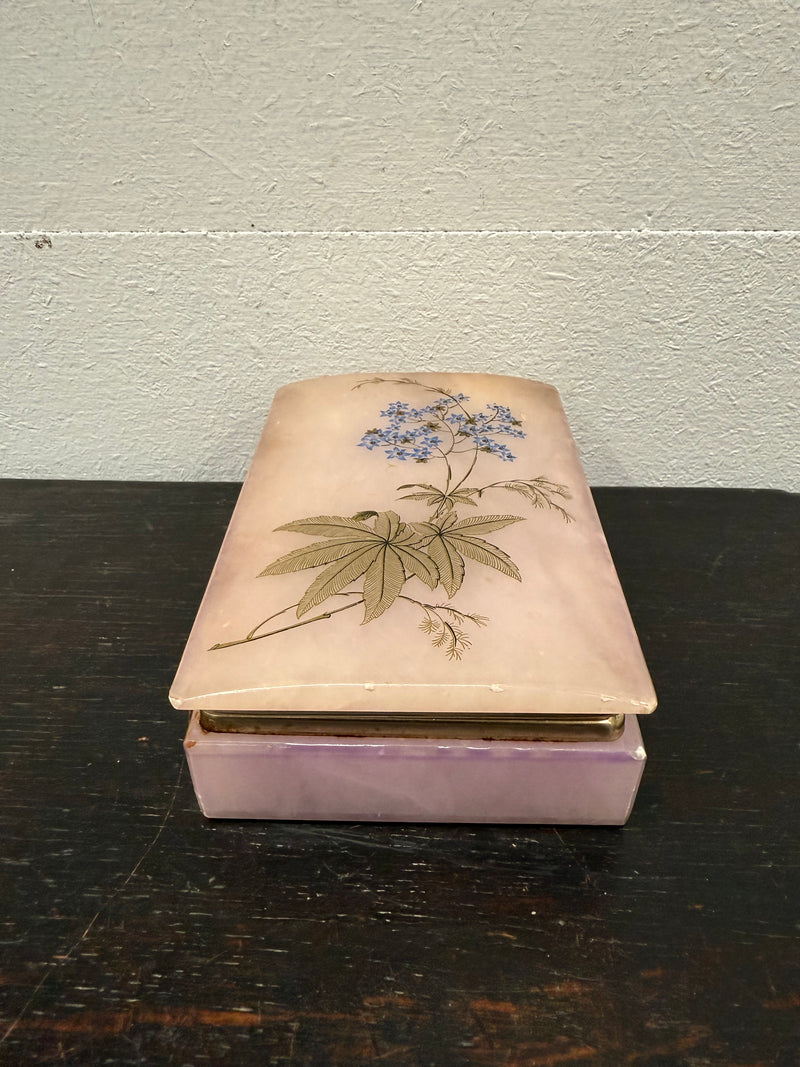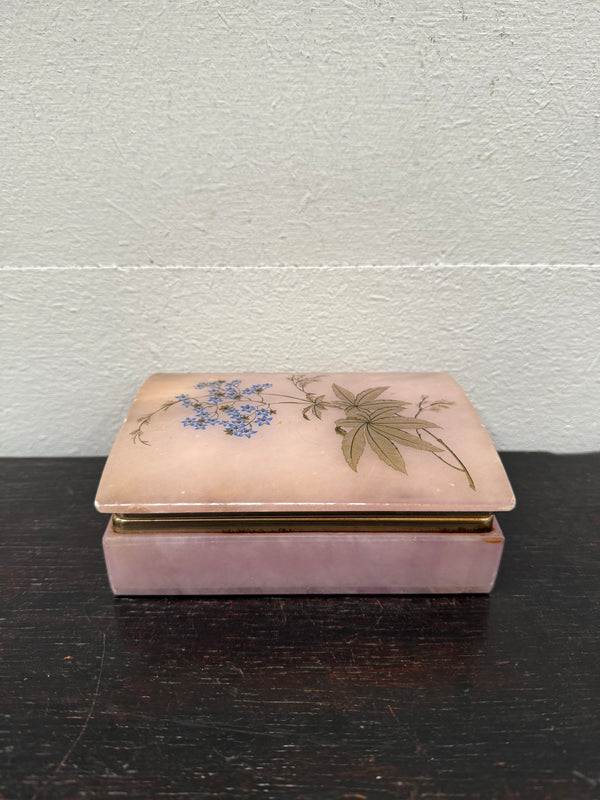 Beautiful floral designed light purple hand carved made in Italy Vintage alabaster trinket box, it is in good original condition with some chips around the corners and edges. Please see photos as they form part of the description.