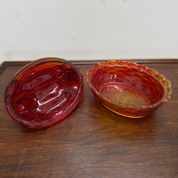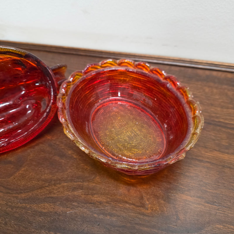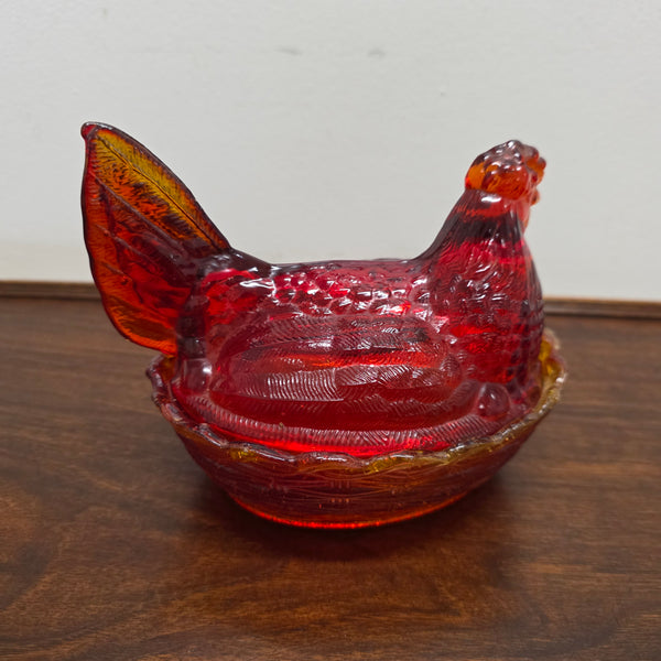 Attractive red Amberina glass hen on nest. In good original condition. Please see photos as they form part of the description.