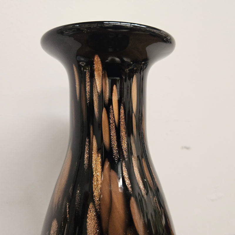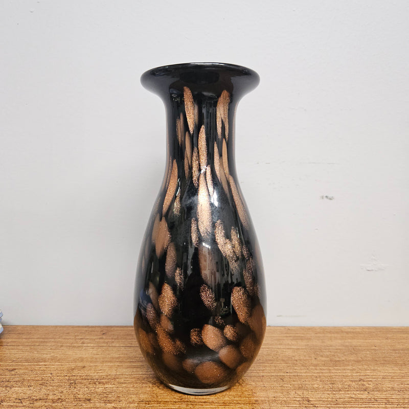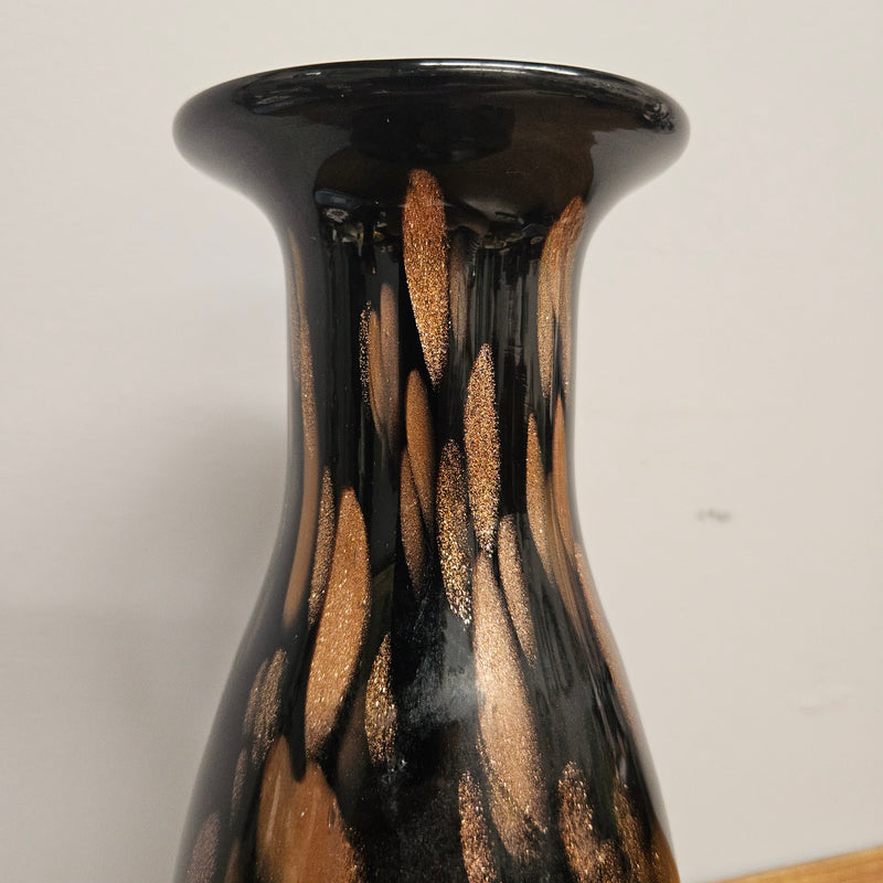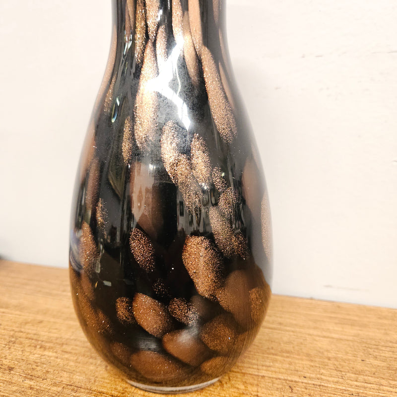 Lovely tall black and bronze 'glitter' art Glass Vase, it is in good original condition. Please see photos as they form part of the description.