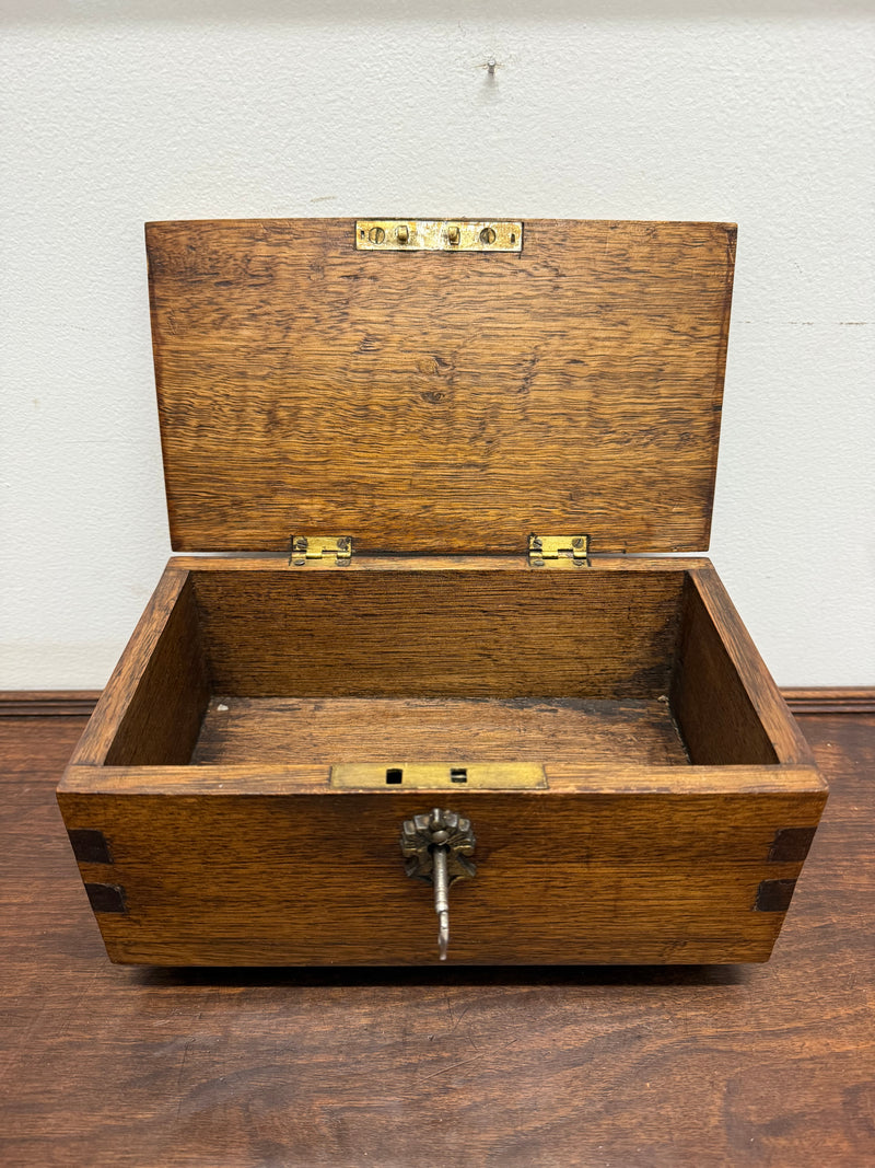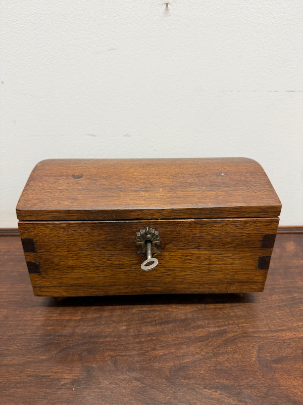 Vintage Arts & Crafts style deed/jewellery trinket box with a key. It is in good original condition. Please see photos as they form part of the description.