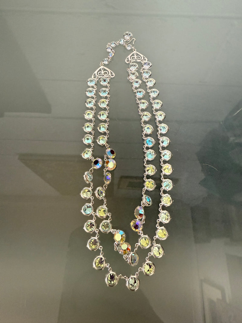 Colorful glass aurora Borealis 2 strand necklace. In good original condition. Please see photos as the form part of the description